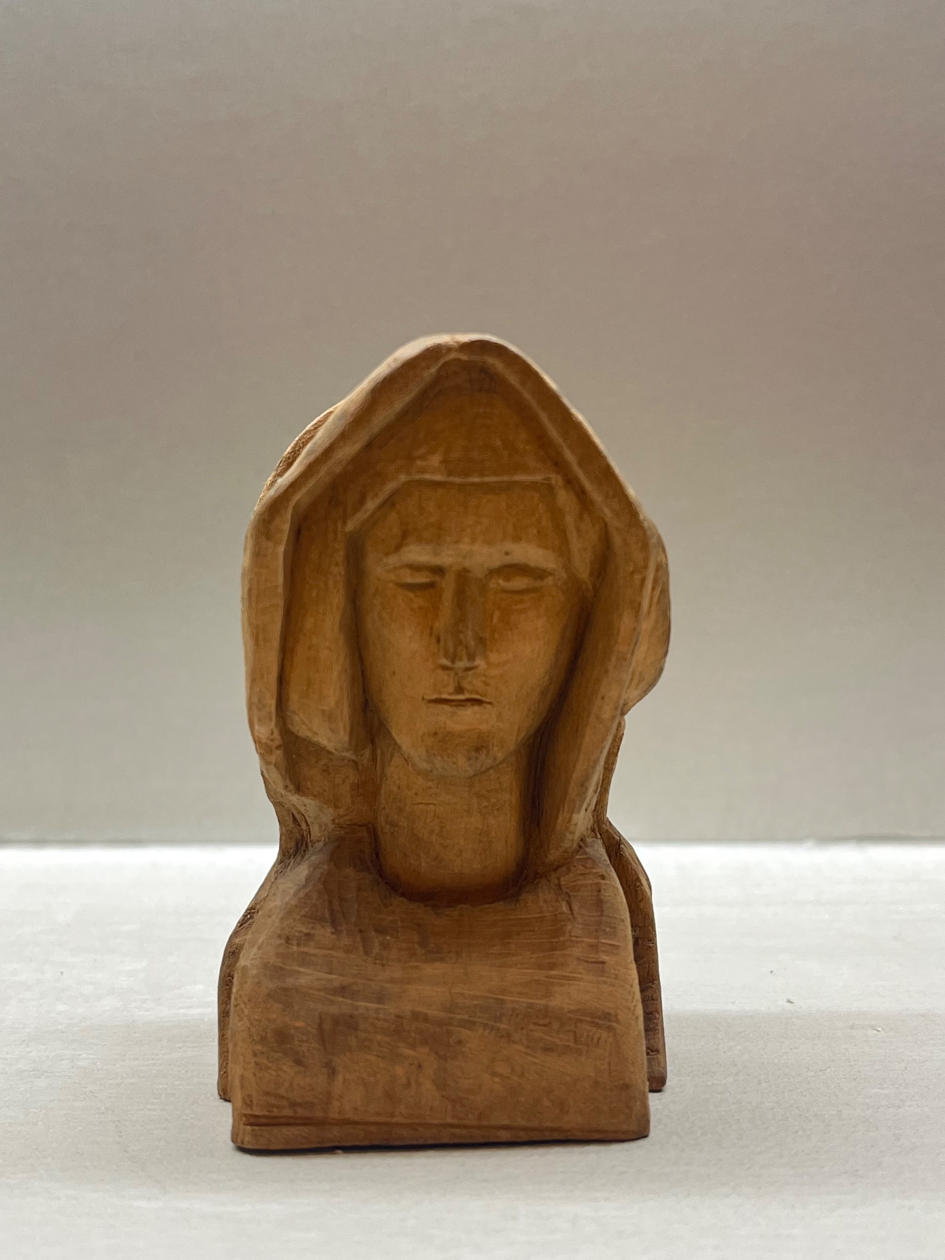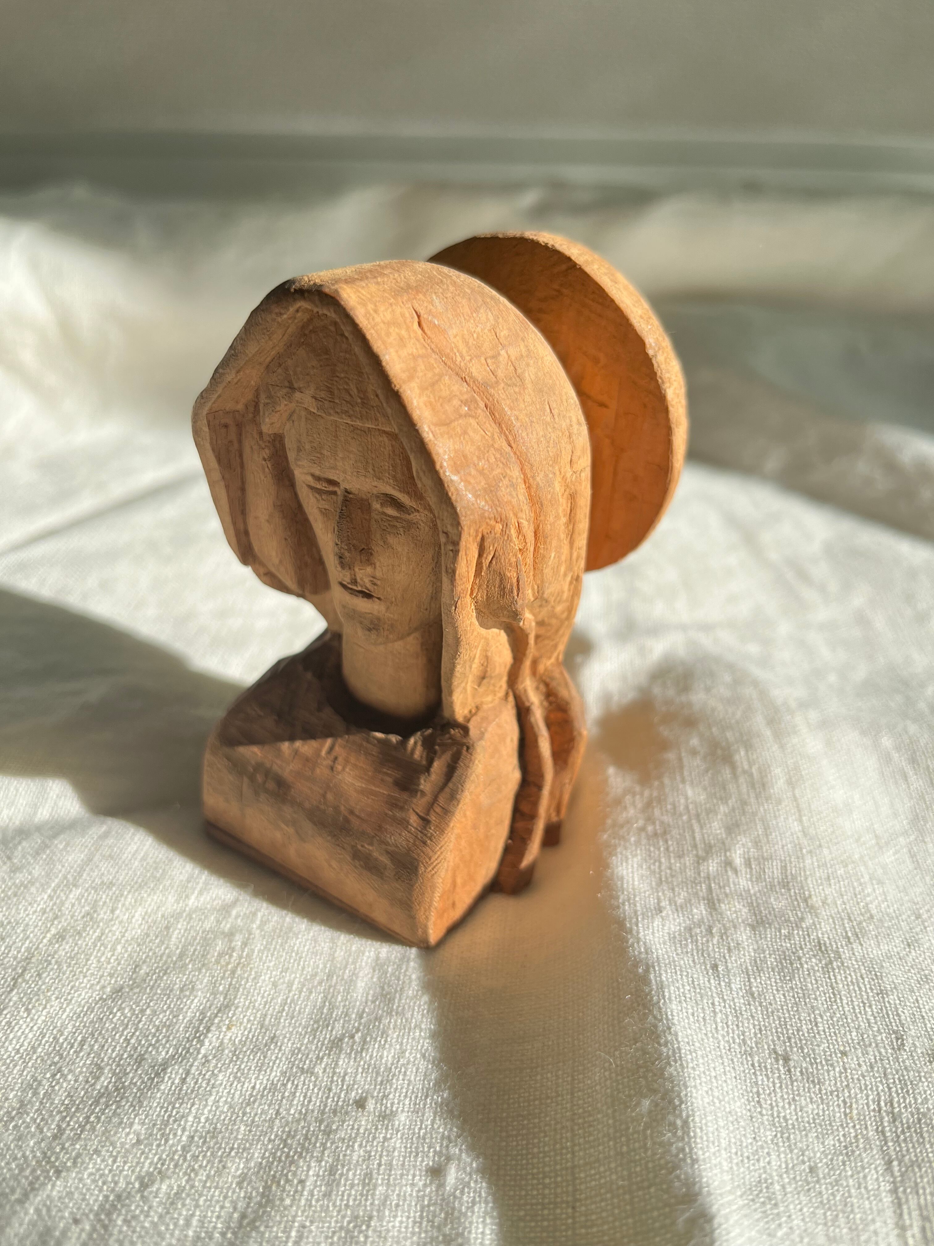 フランスの古い聖母の木彫りの胸像です。