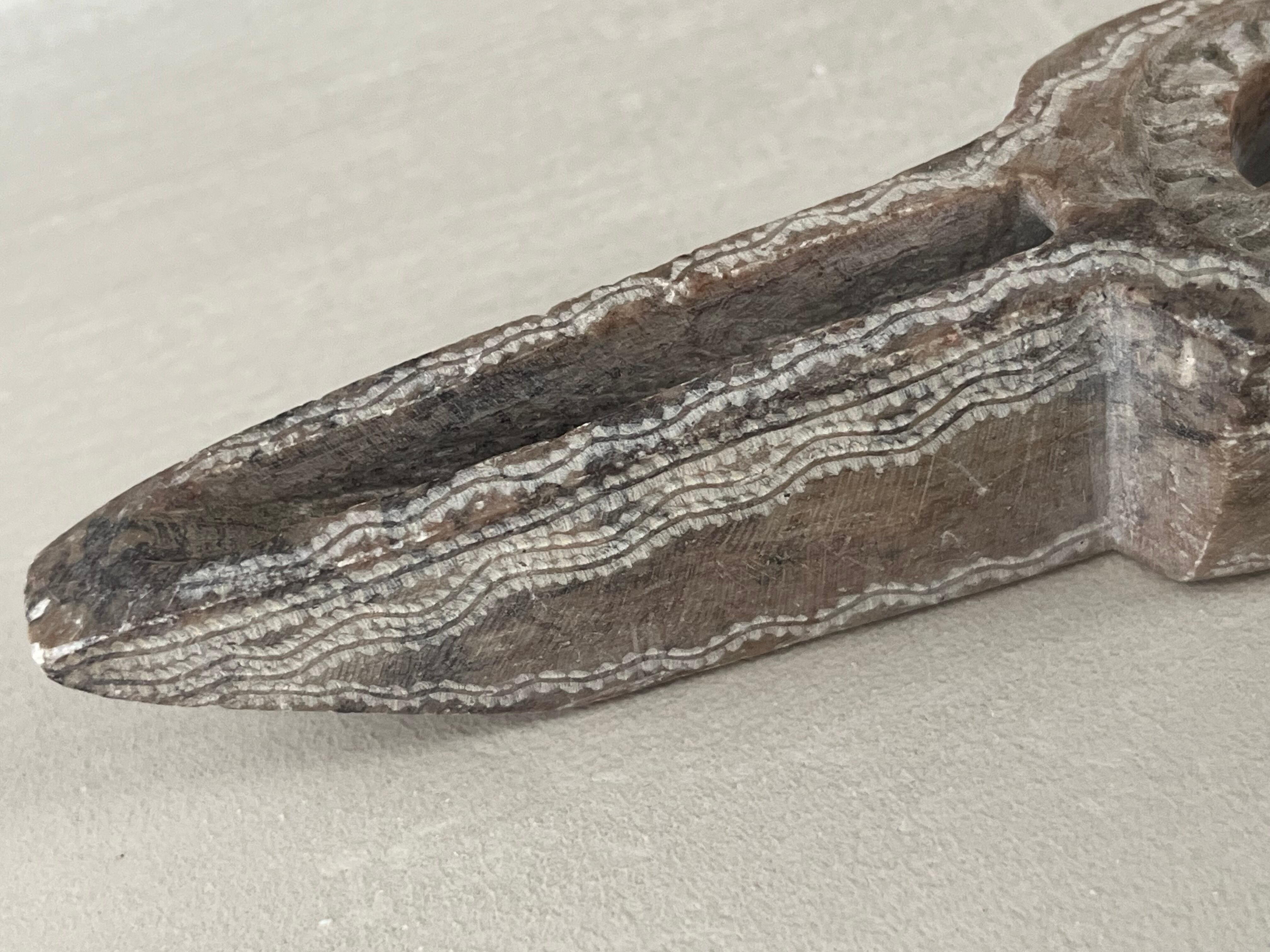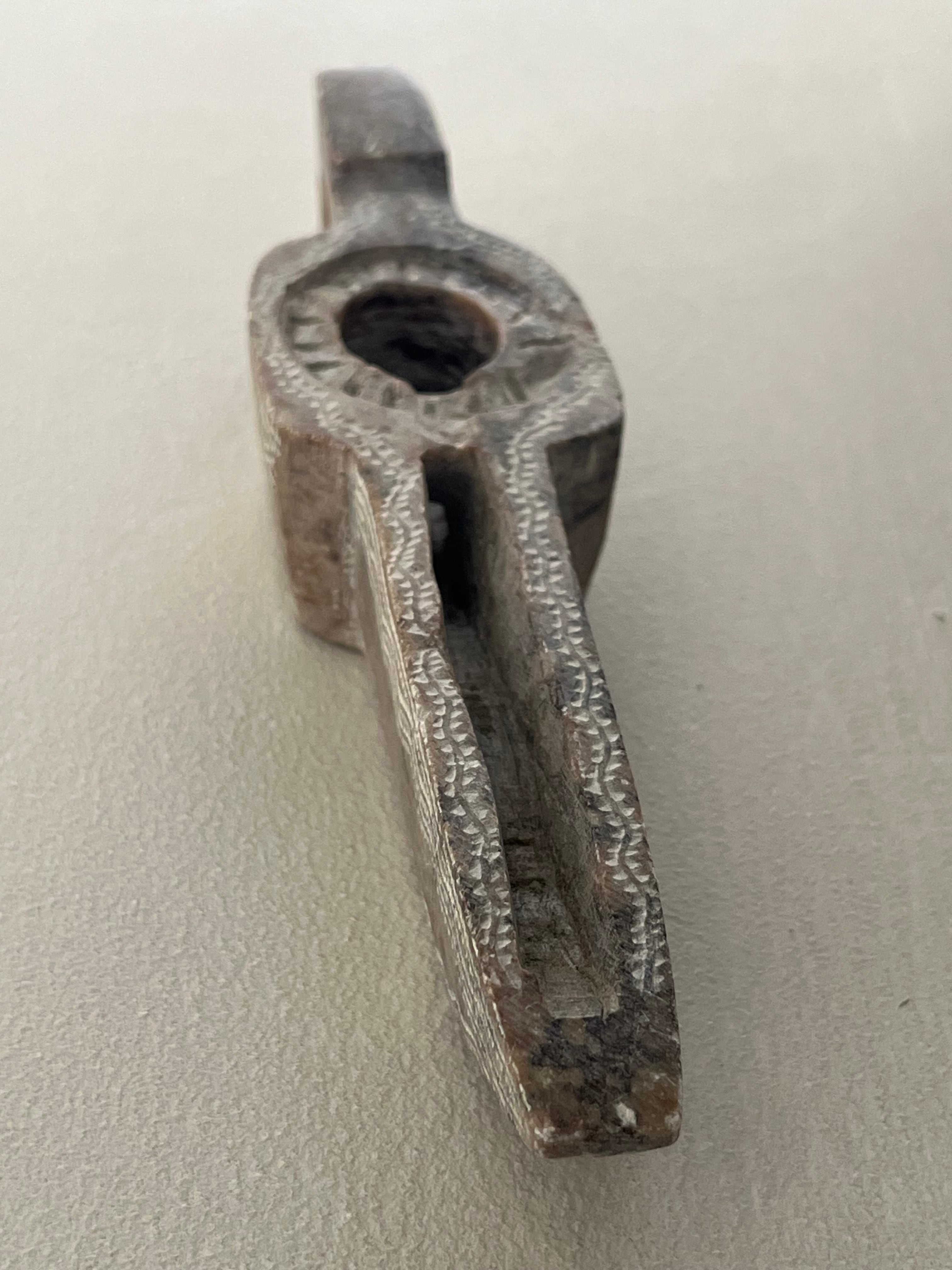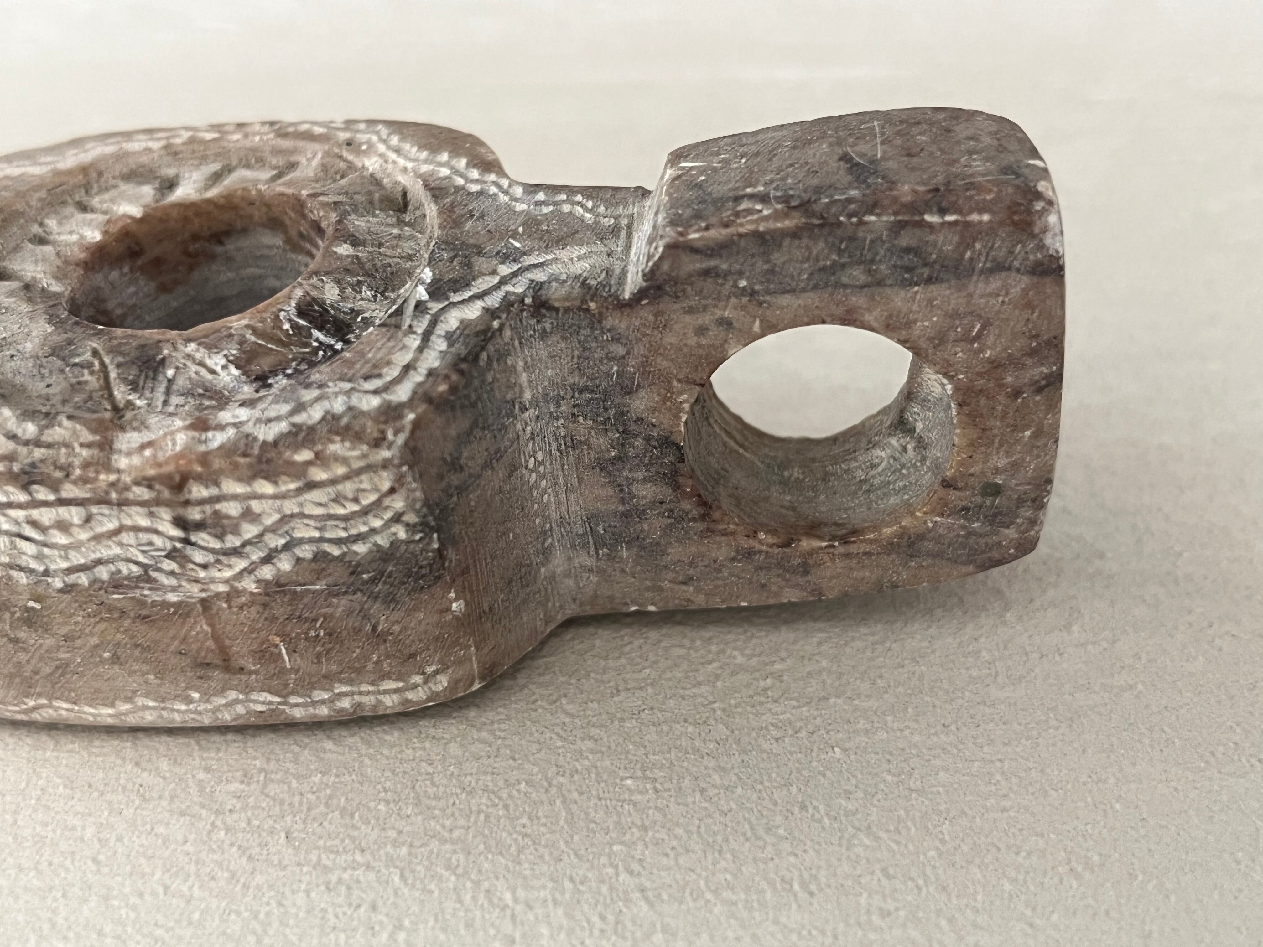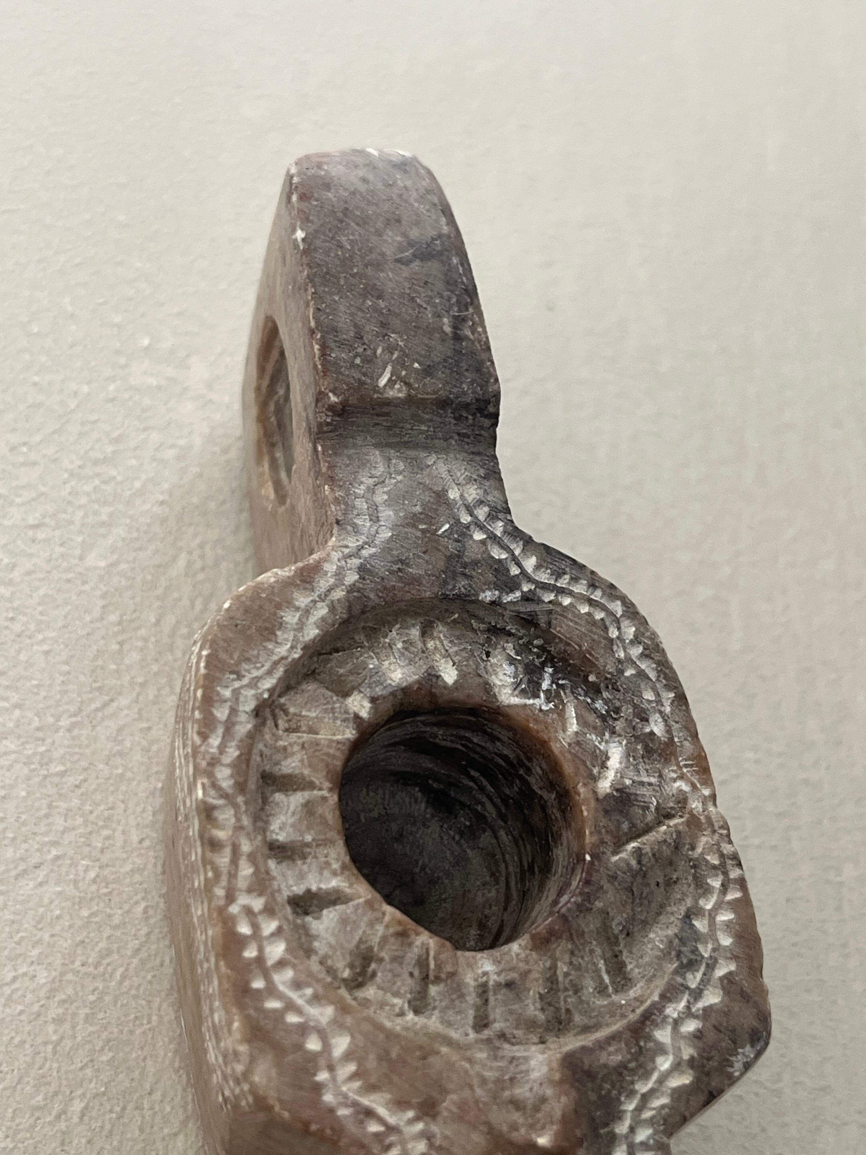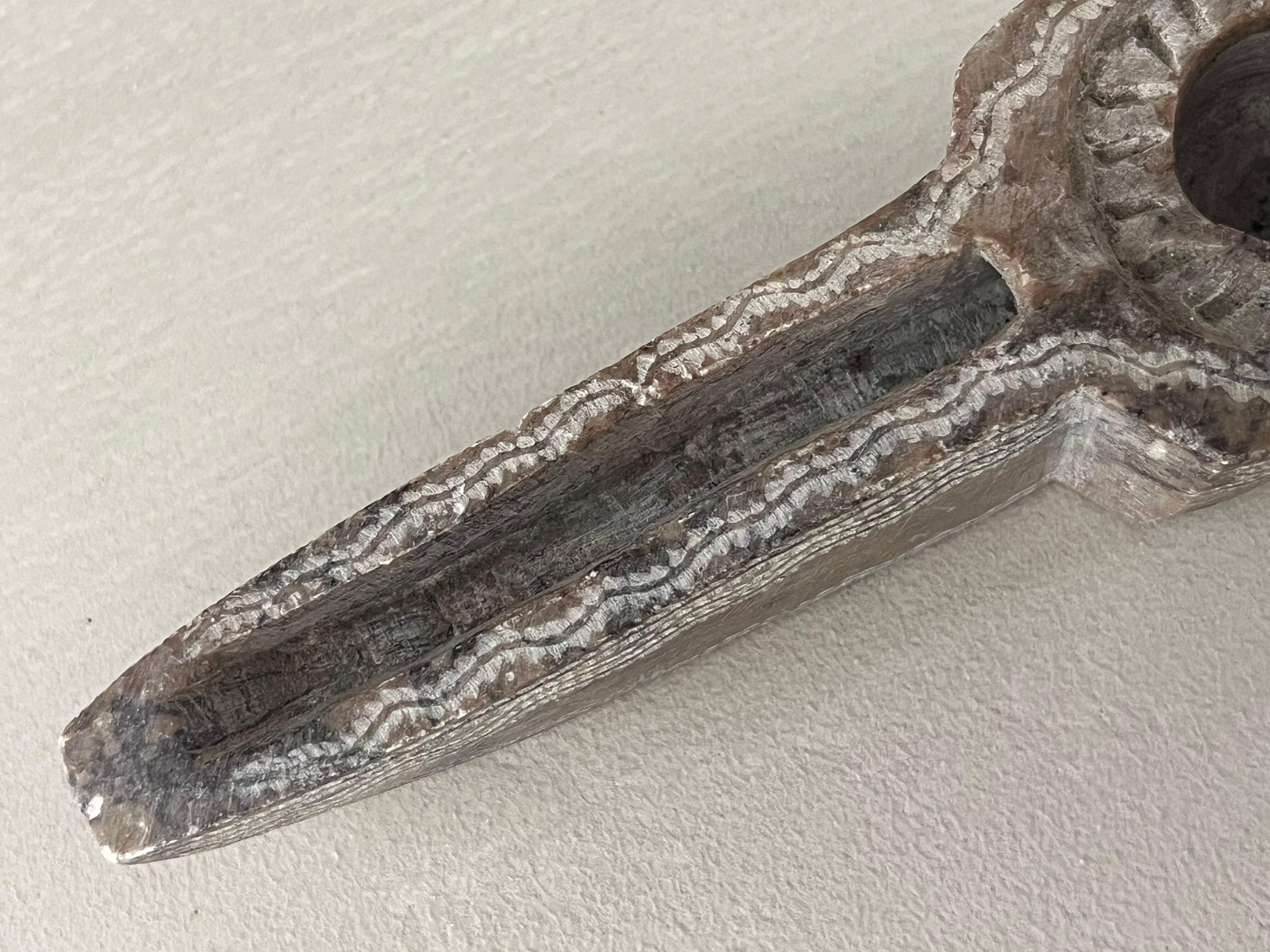 大理石のような滑らかな石に、細かな彫り模様が施された美しいお品です。