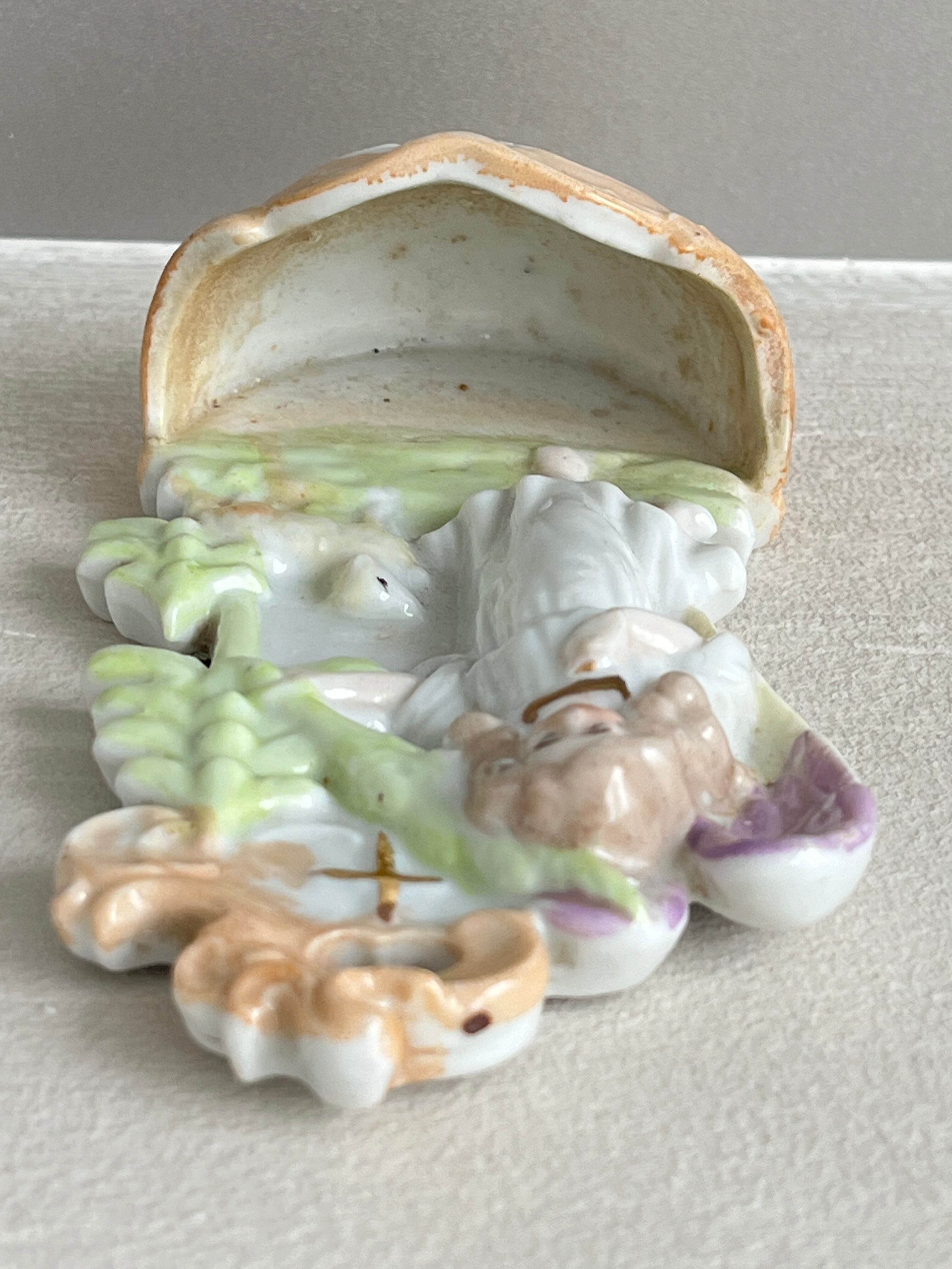 天使の首飾り、水入れの✴︎マークや十字架に施された金彩も、少しの剥がれが見られるもののはっきりと残っています。