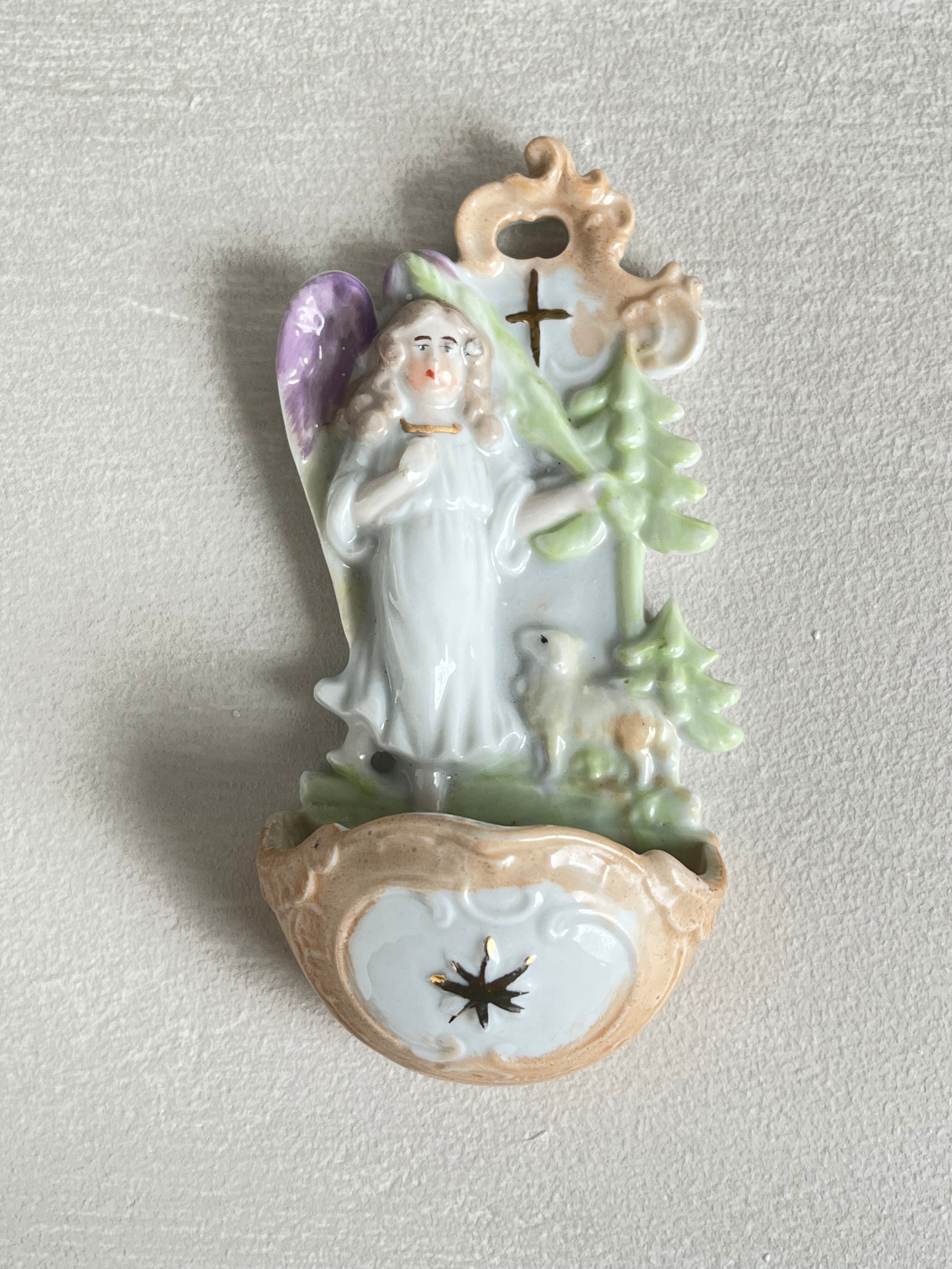 フランス / ベニチエ 聖水盤 女性の天使像 陶磁器