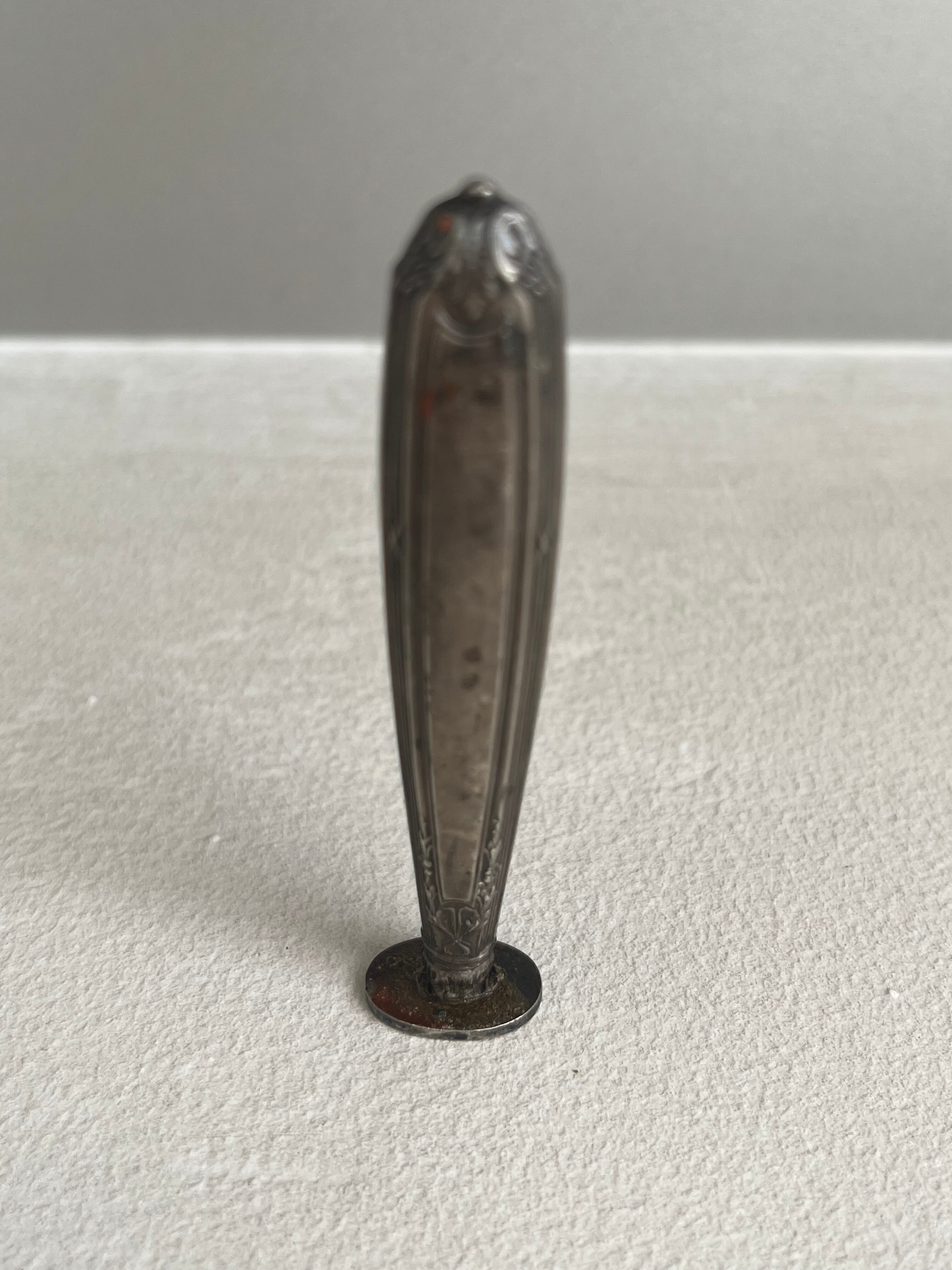 ころんと丸いフォルムのハンドルに、飾り文字のスタンプヘッドが付いています。