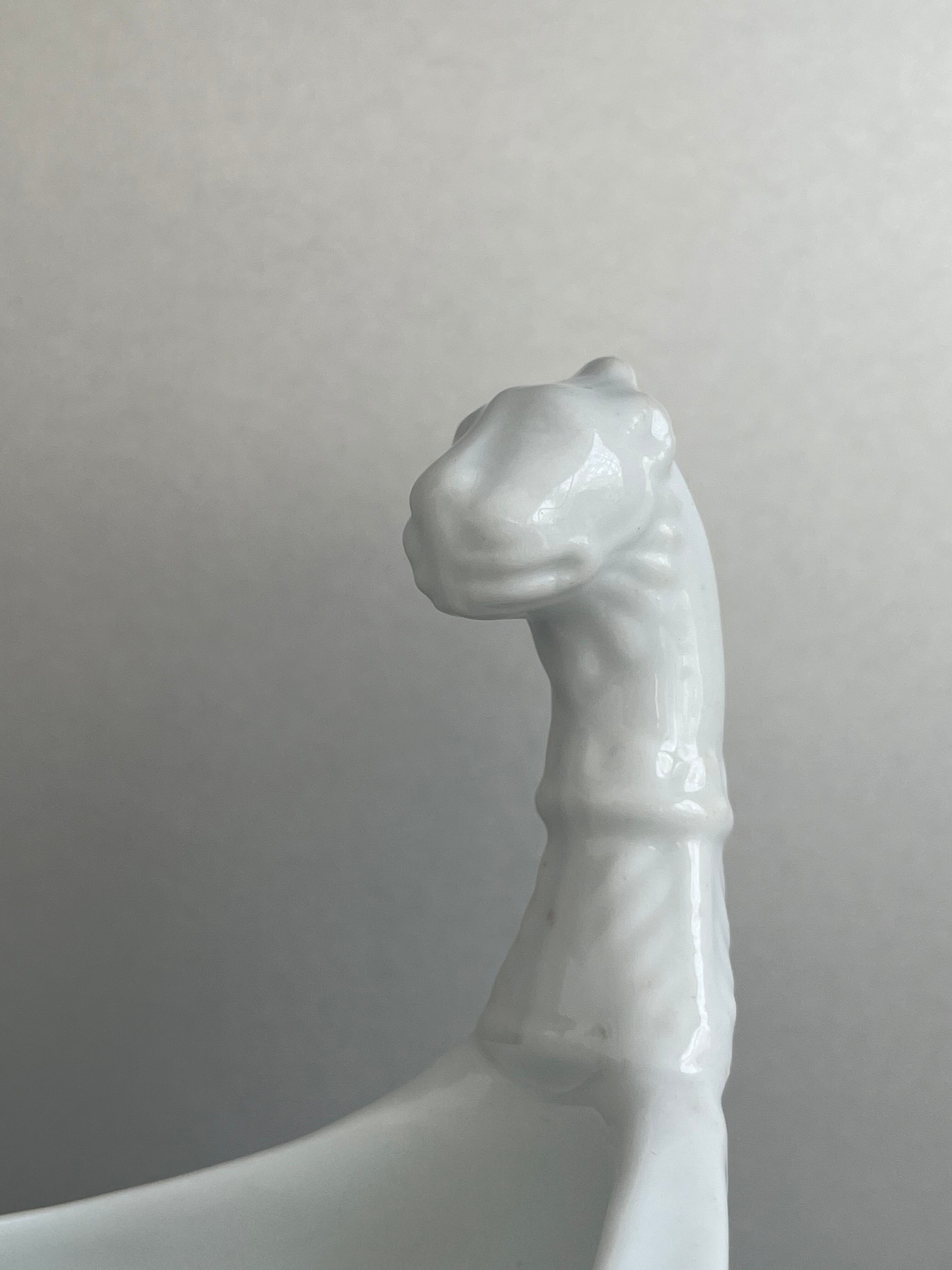 当時流行した、新古典主義によく見られる動物モチーフの把手です。