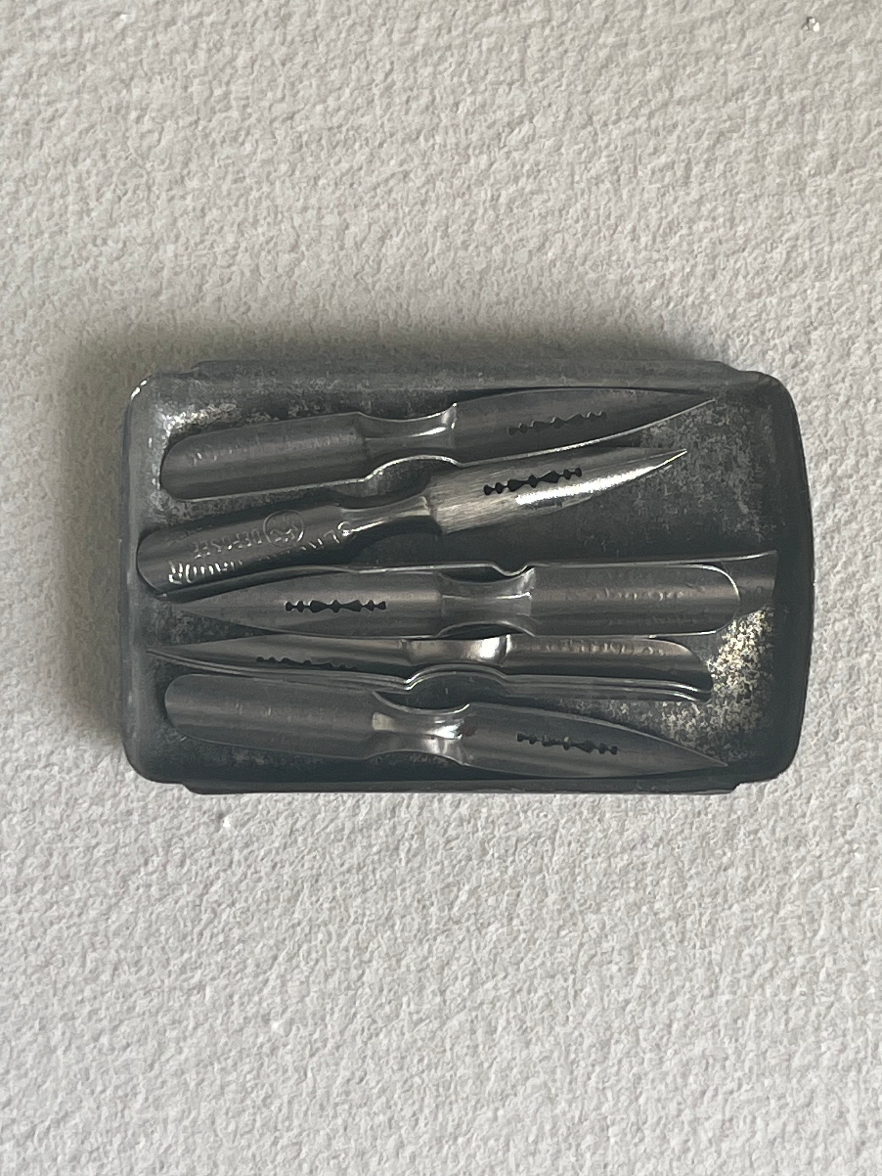 なんとも言えないアンティーク味のある佇まいの小箱に、比較的状態のいいペン先が入っています。