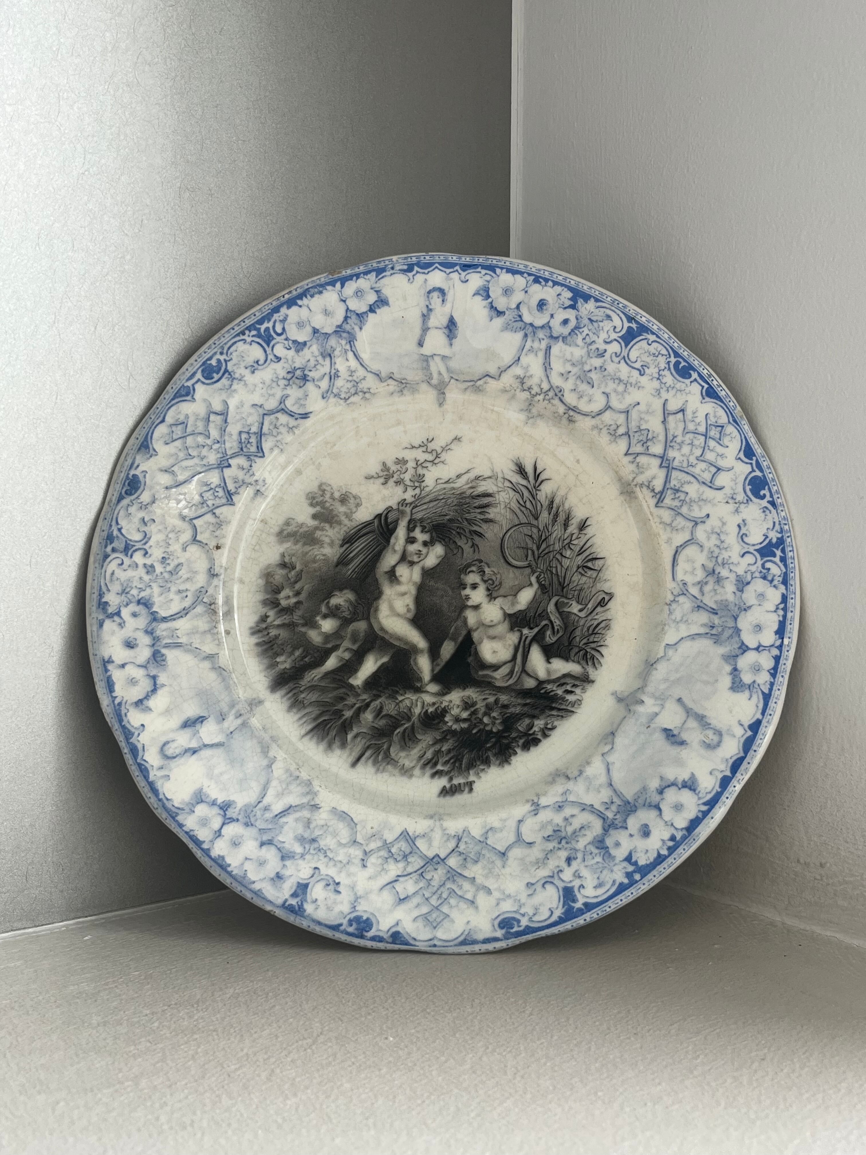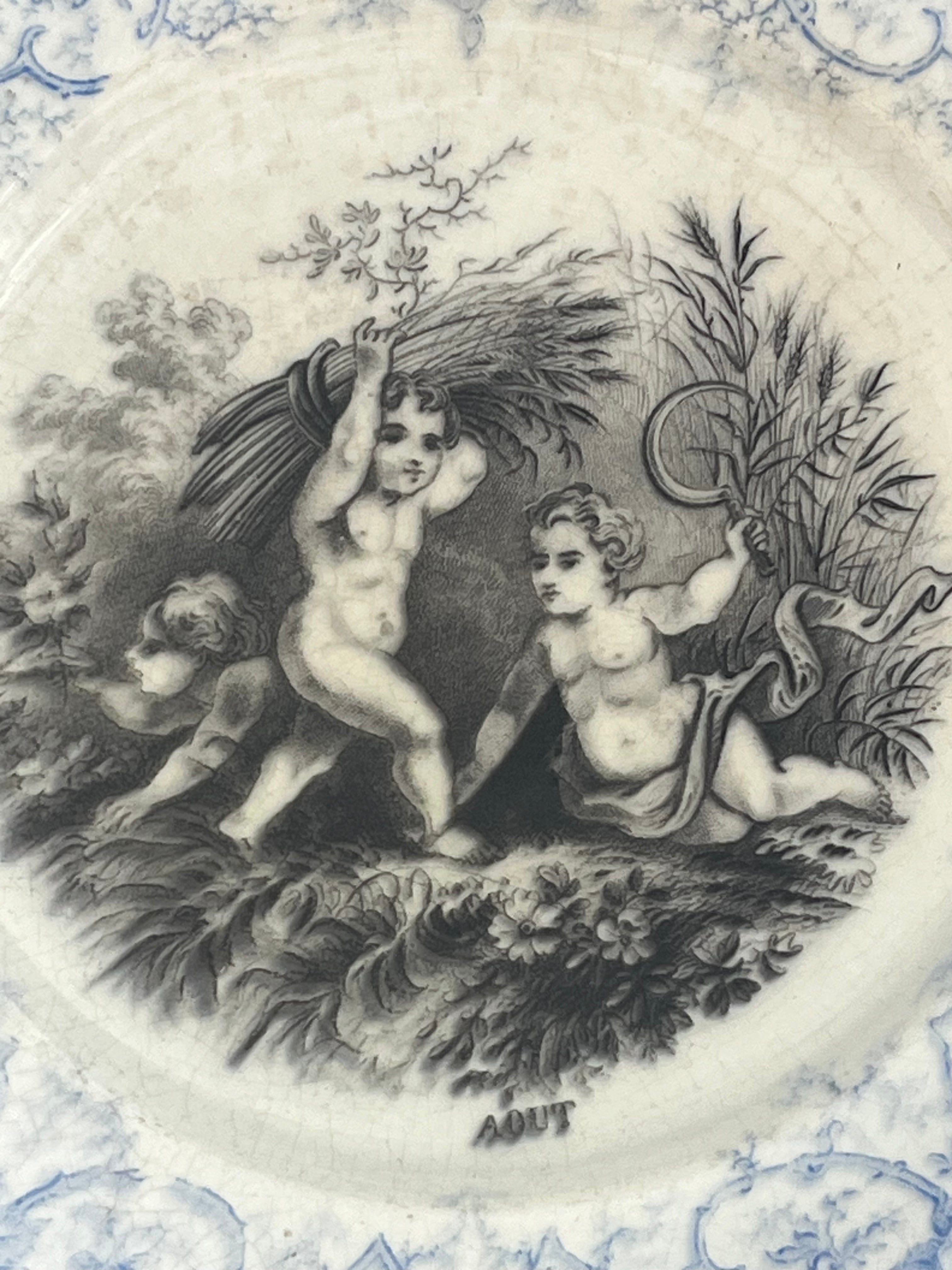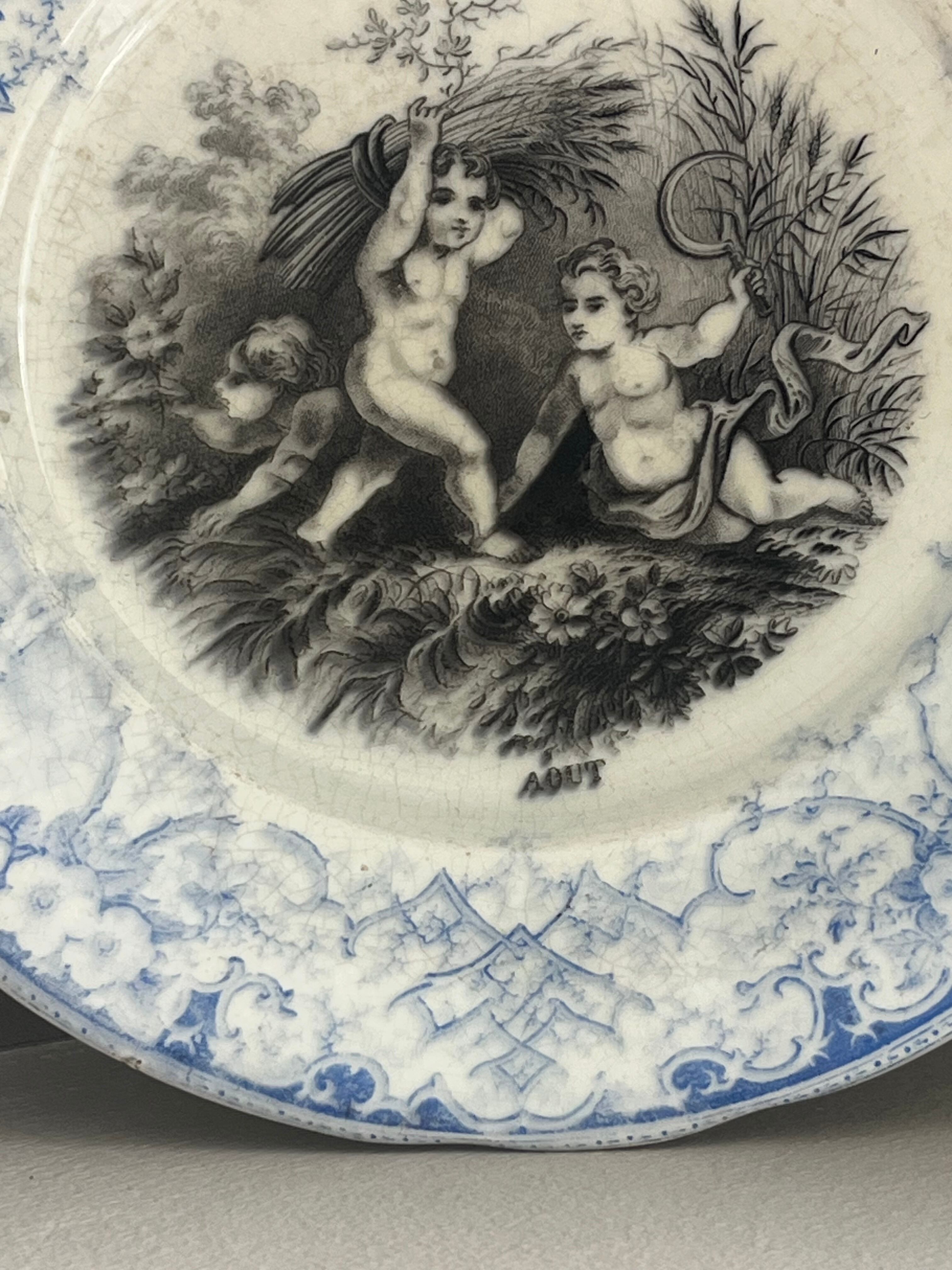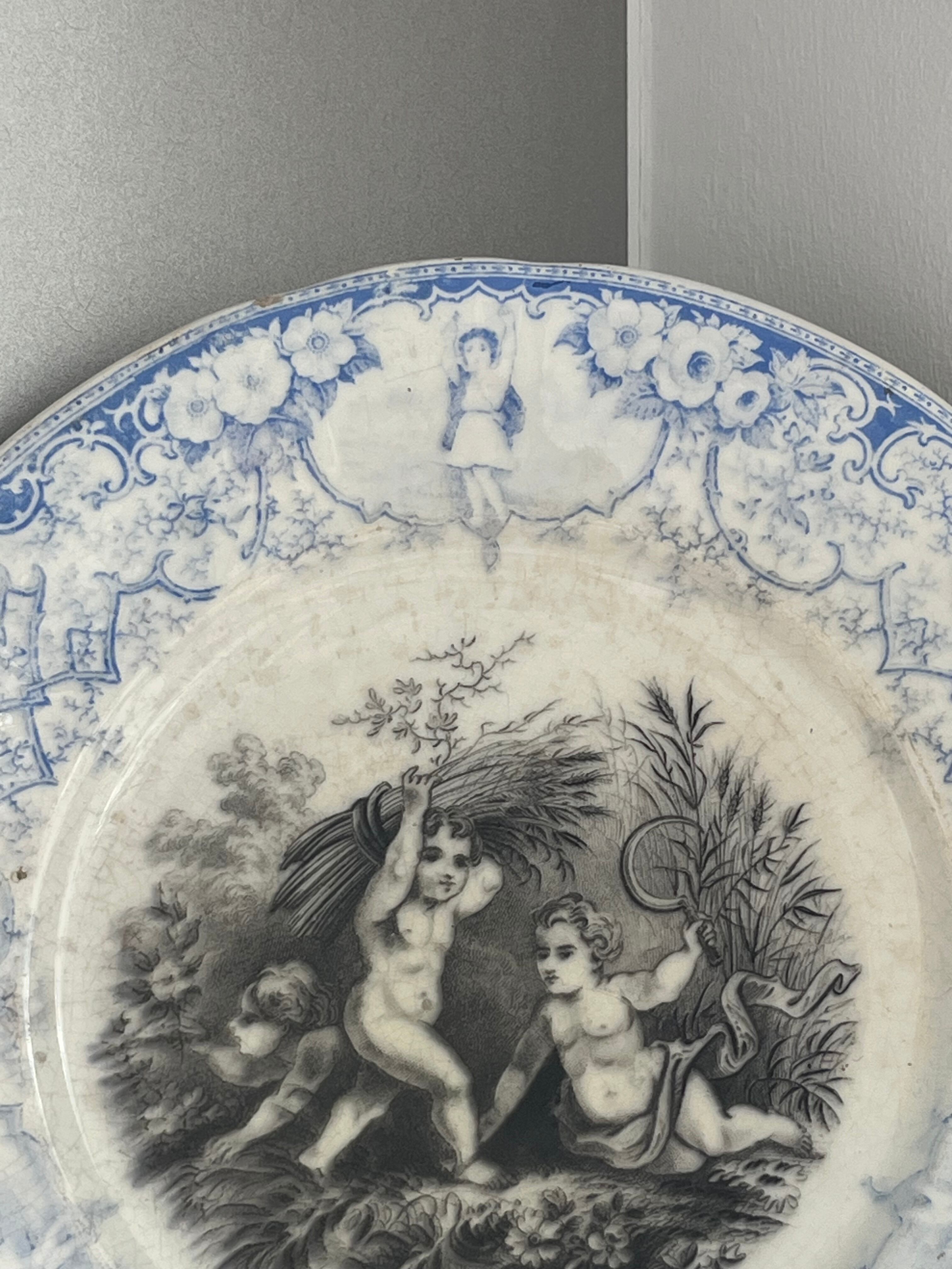 フランス / クレイユエモントロー グリザイユ 天使の絵皿