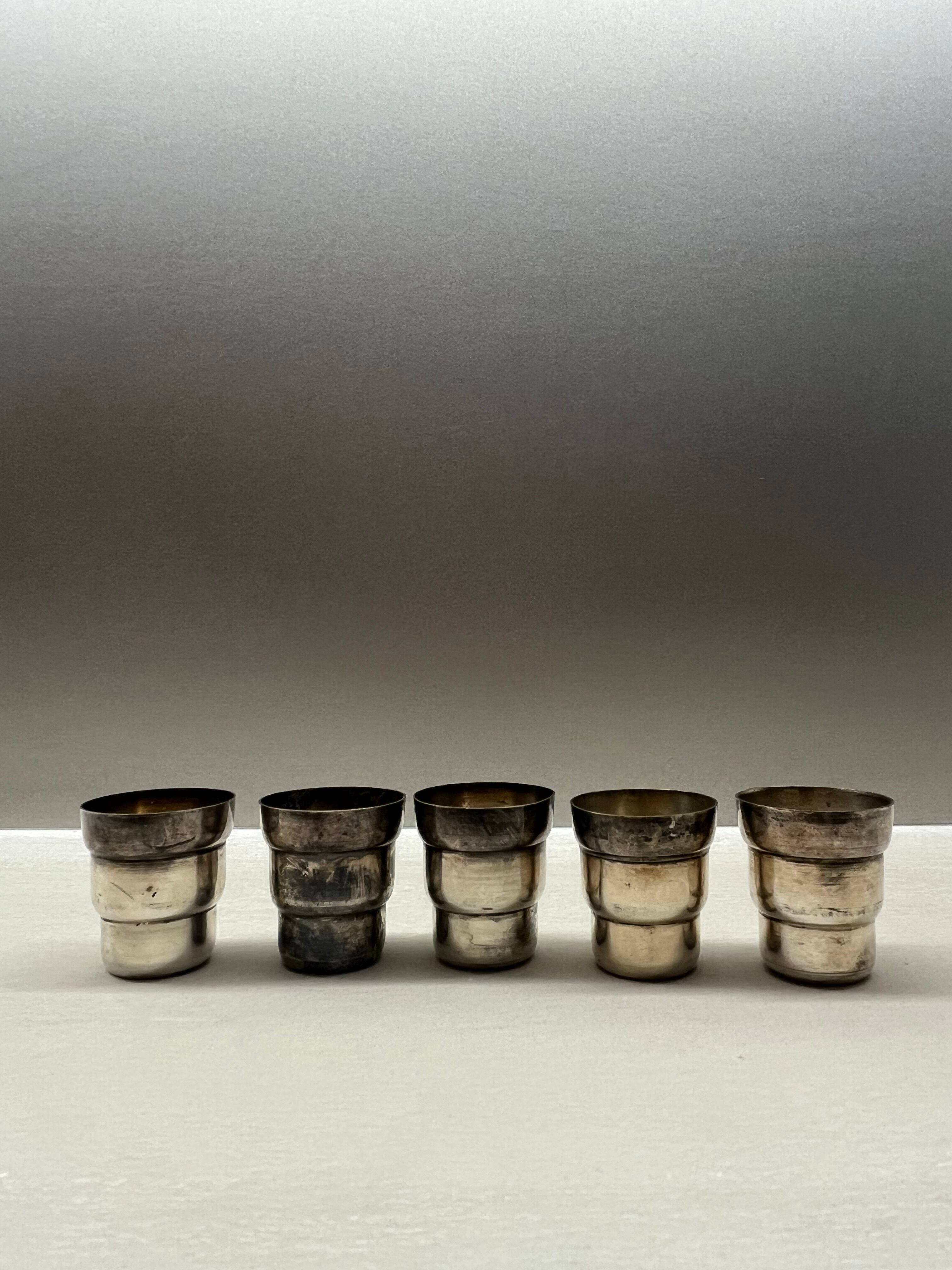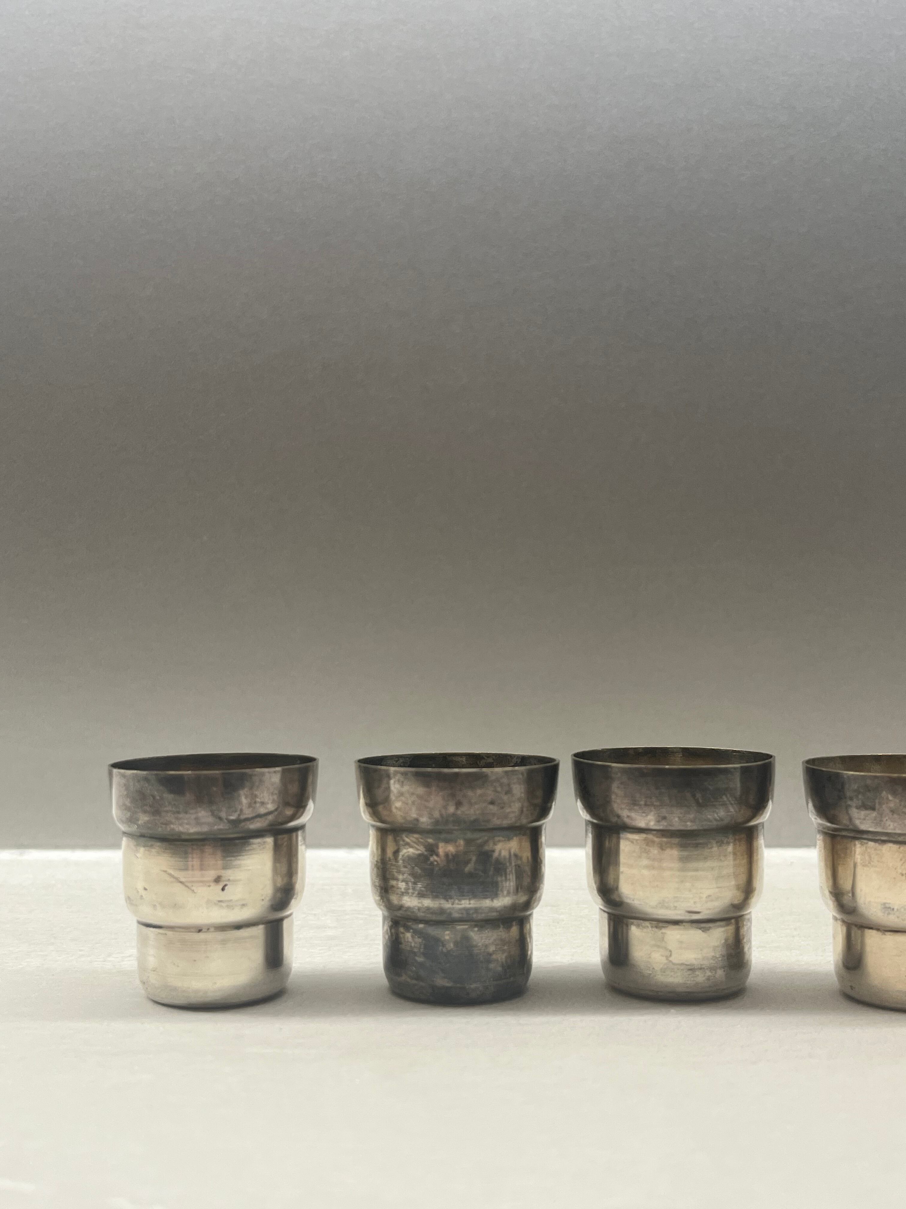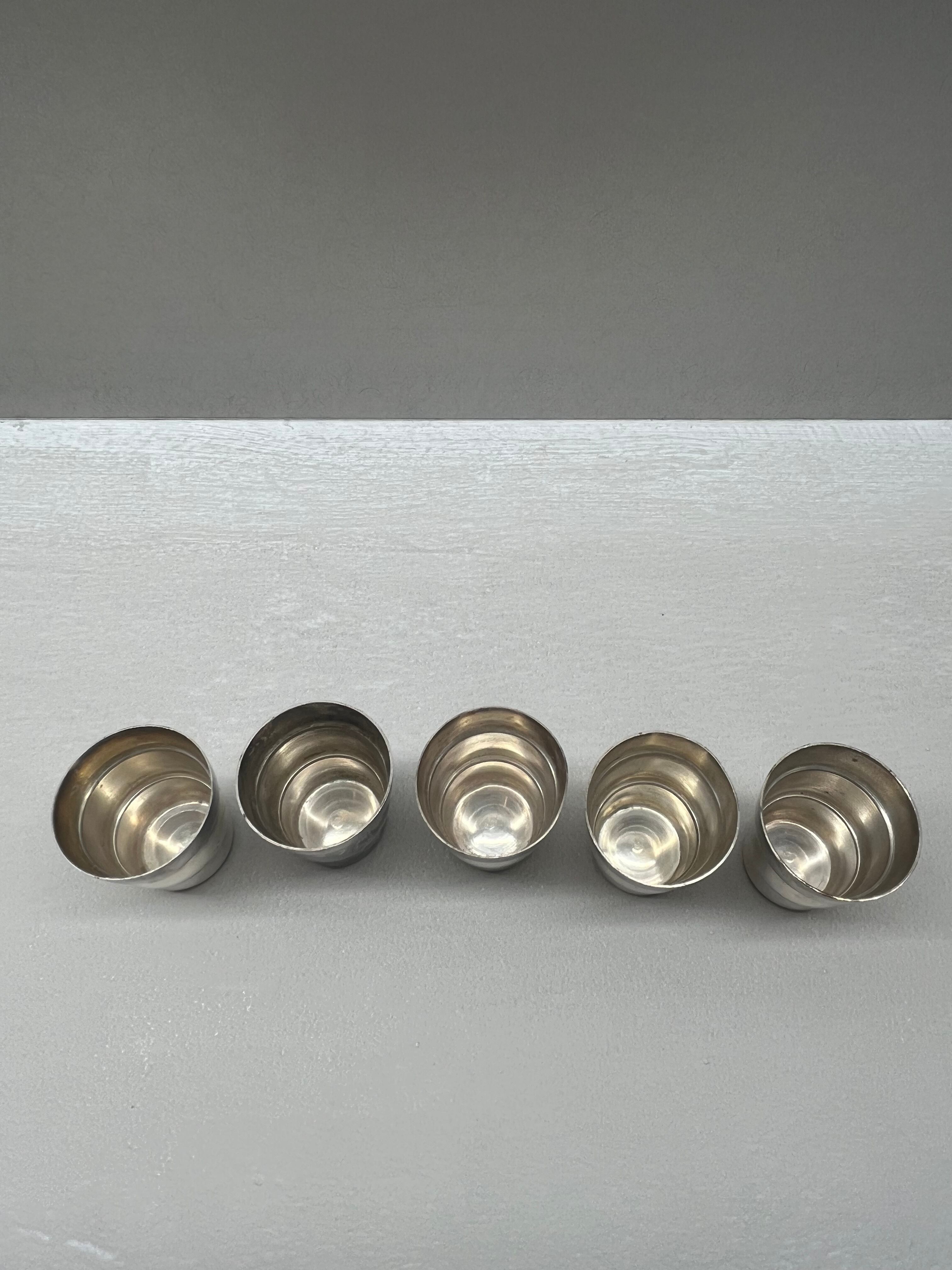 シンプルですが特徴のあるデザインがレトロで可愛らしい小さな金属グラスです。