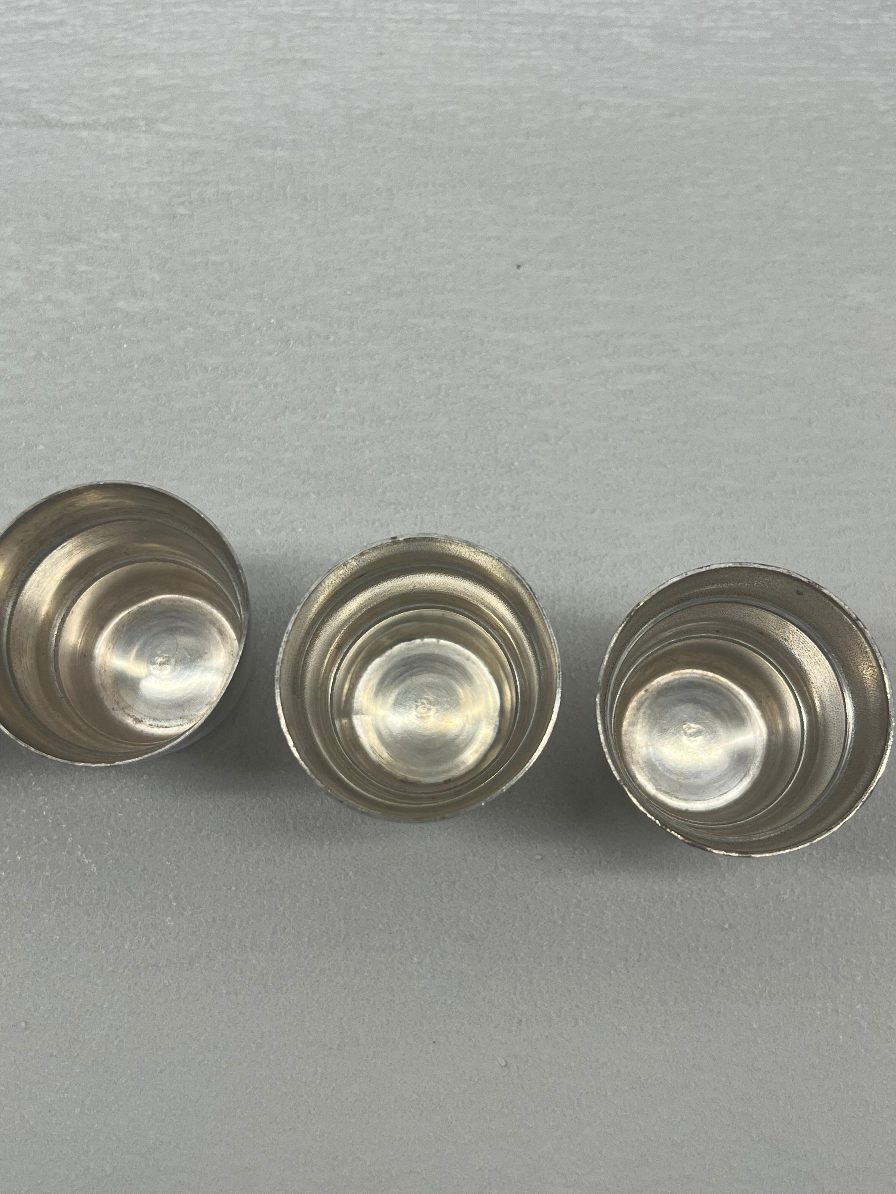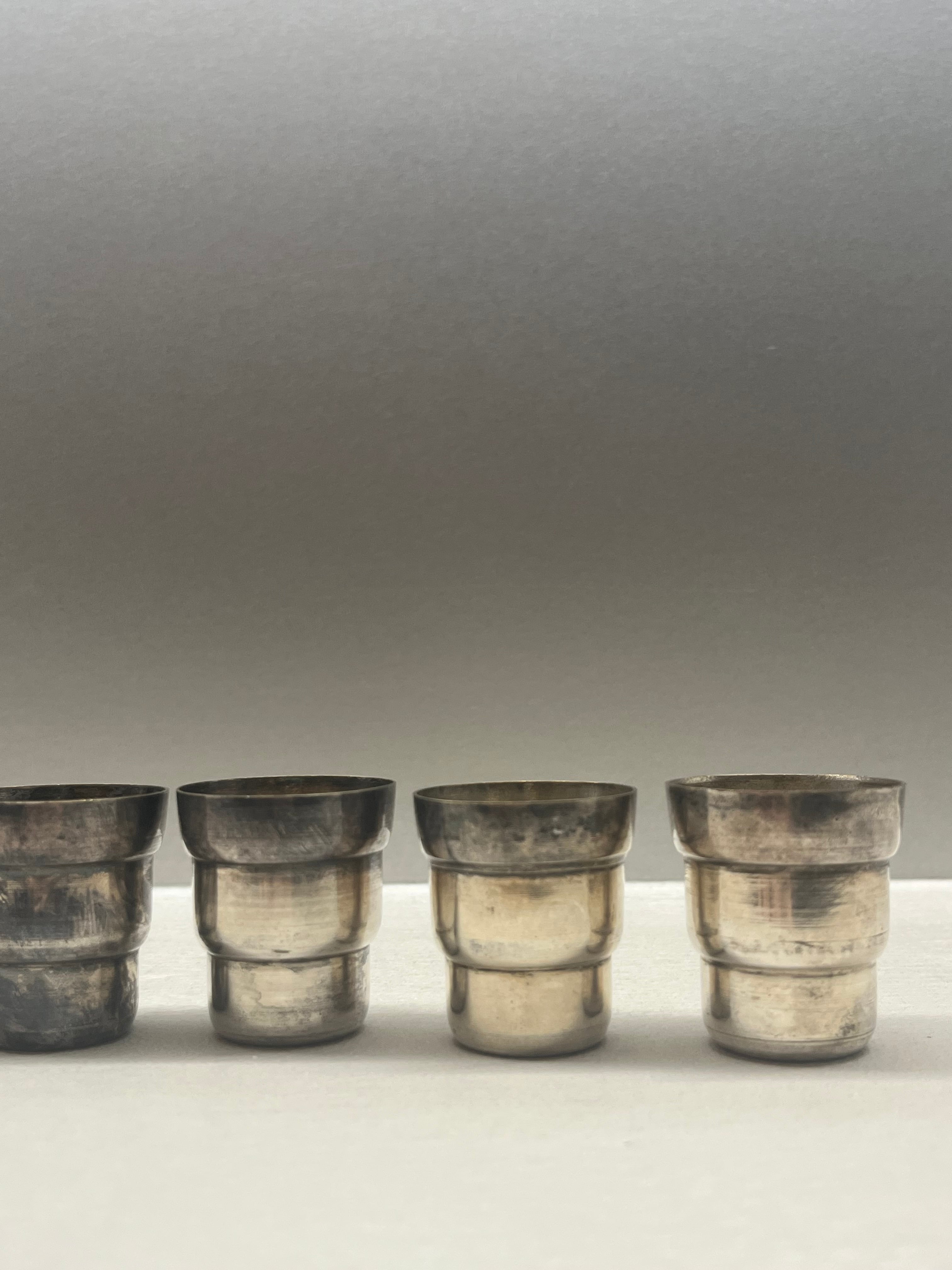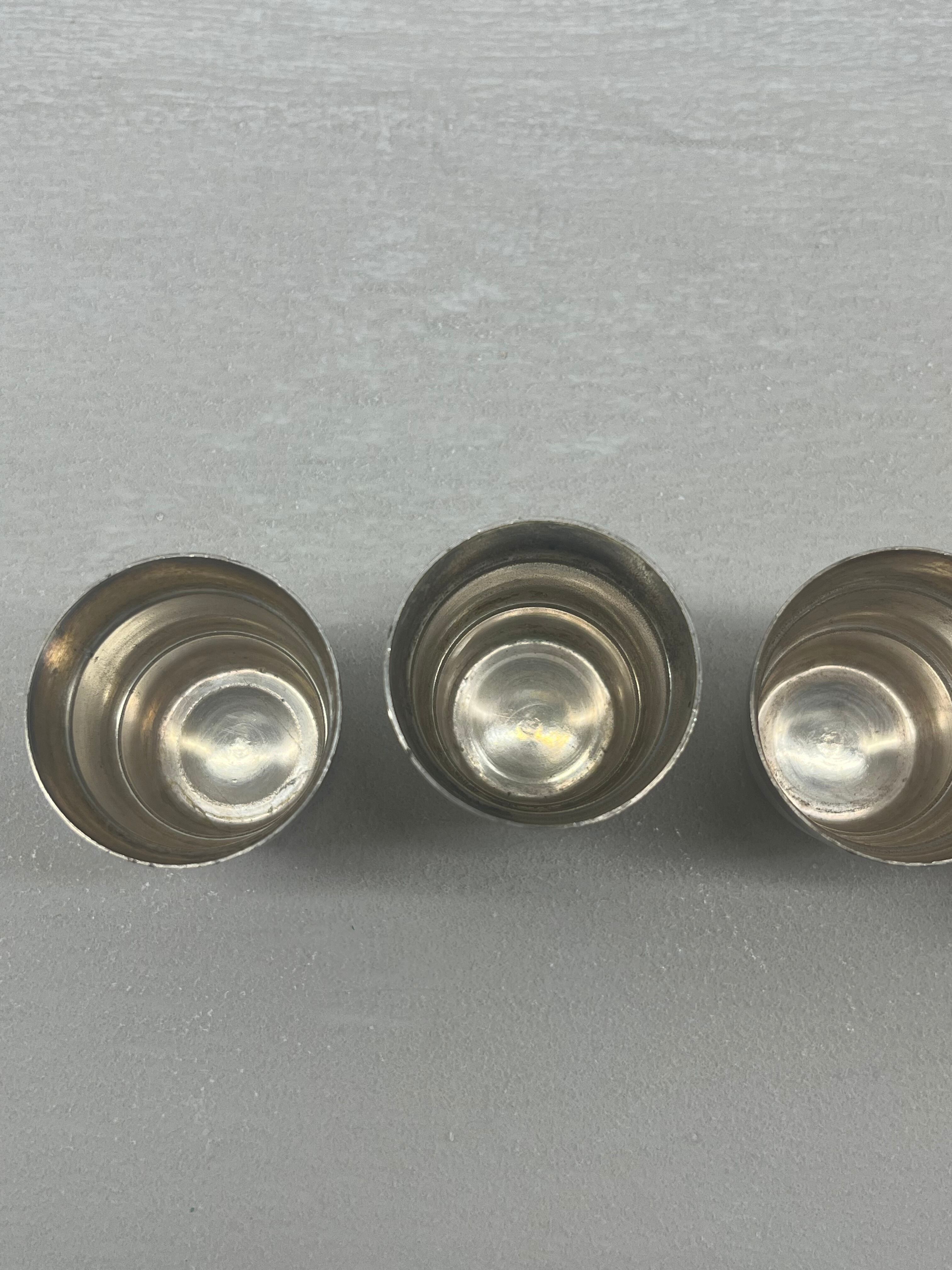 シンプルですが特徴のあるデザインがレトロで可愛らしい小さな金属グラスです。