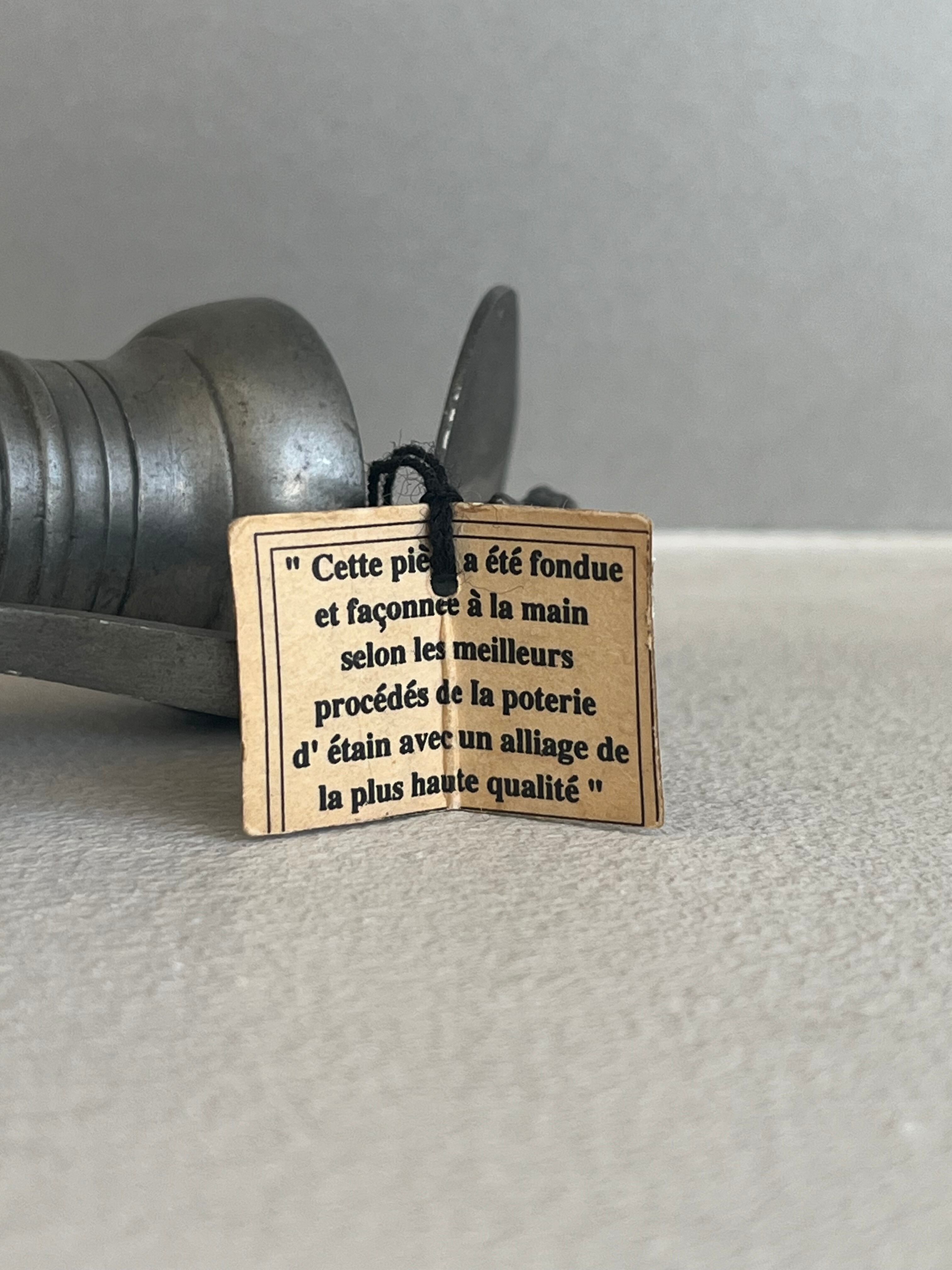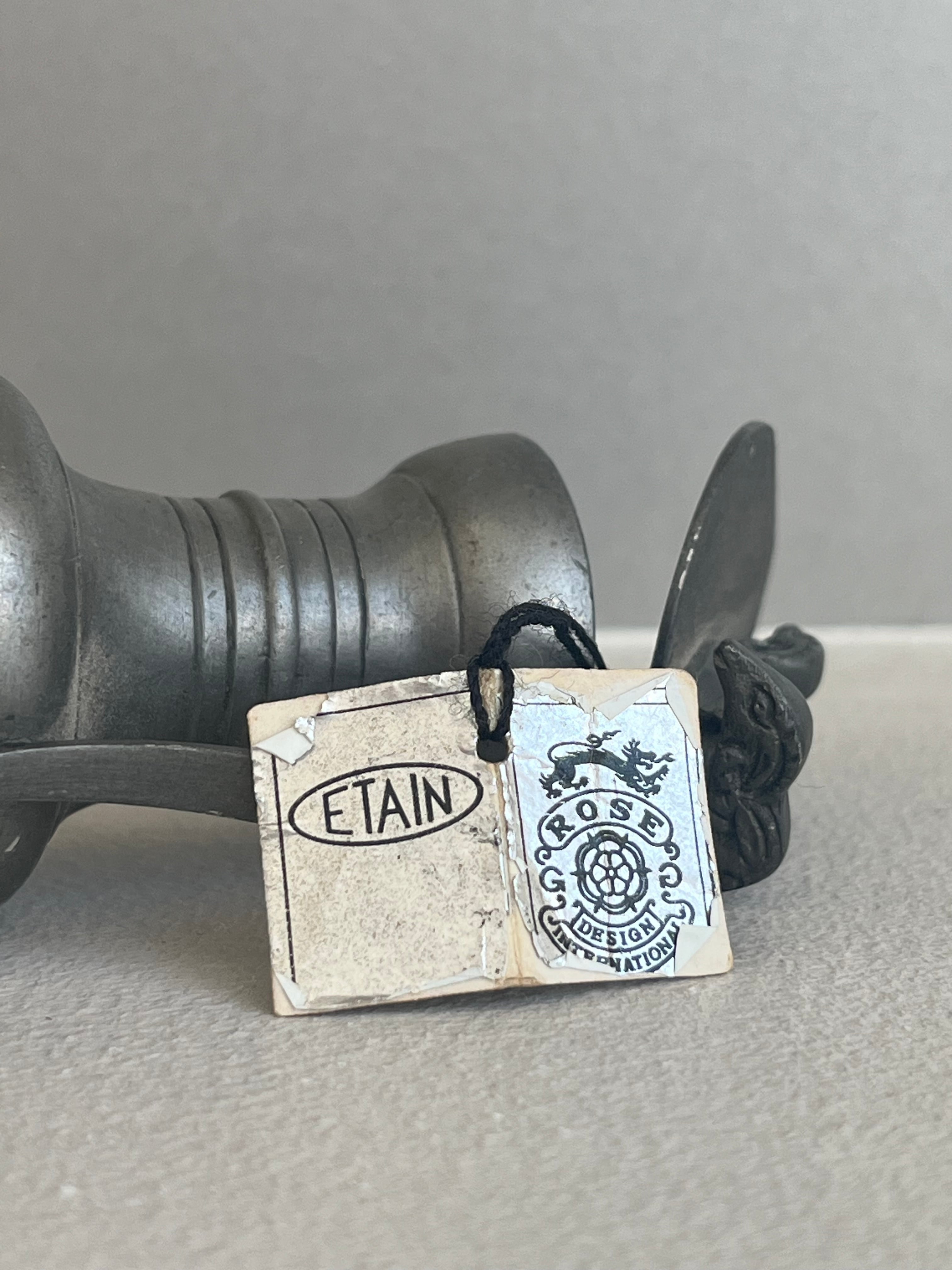 1900年代後期にフランス・アンジェでピューター製品を作っていたメーカー、ローズデザインインターナショナルのタグがついています。