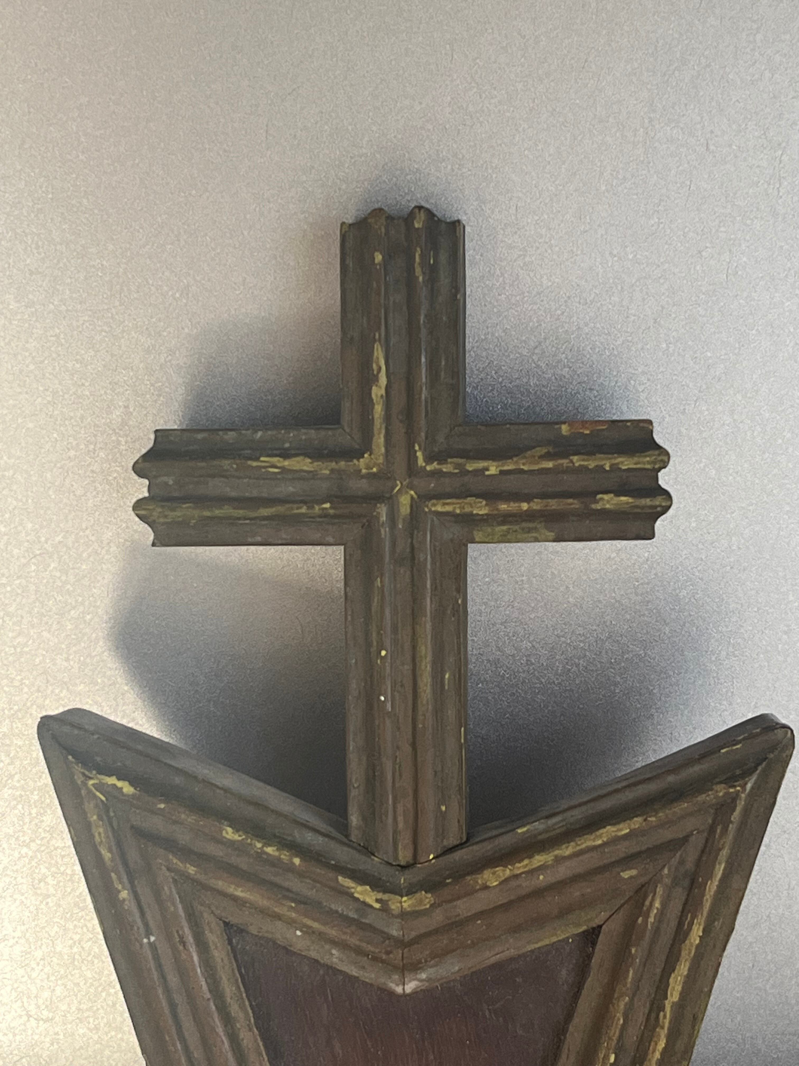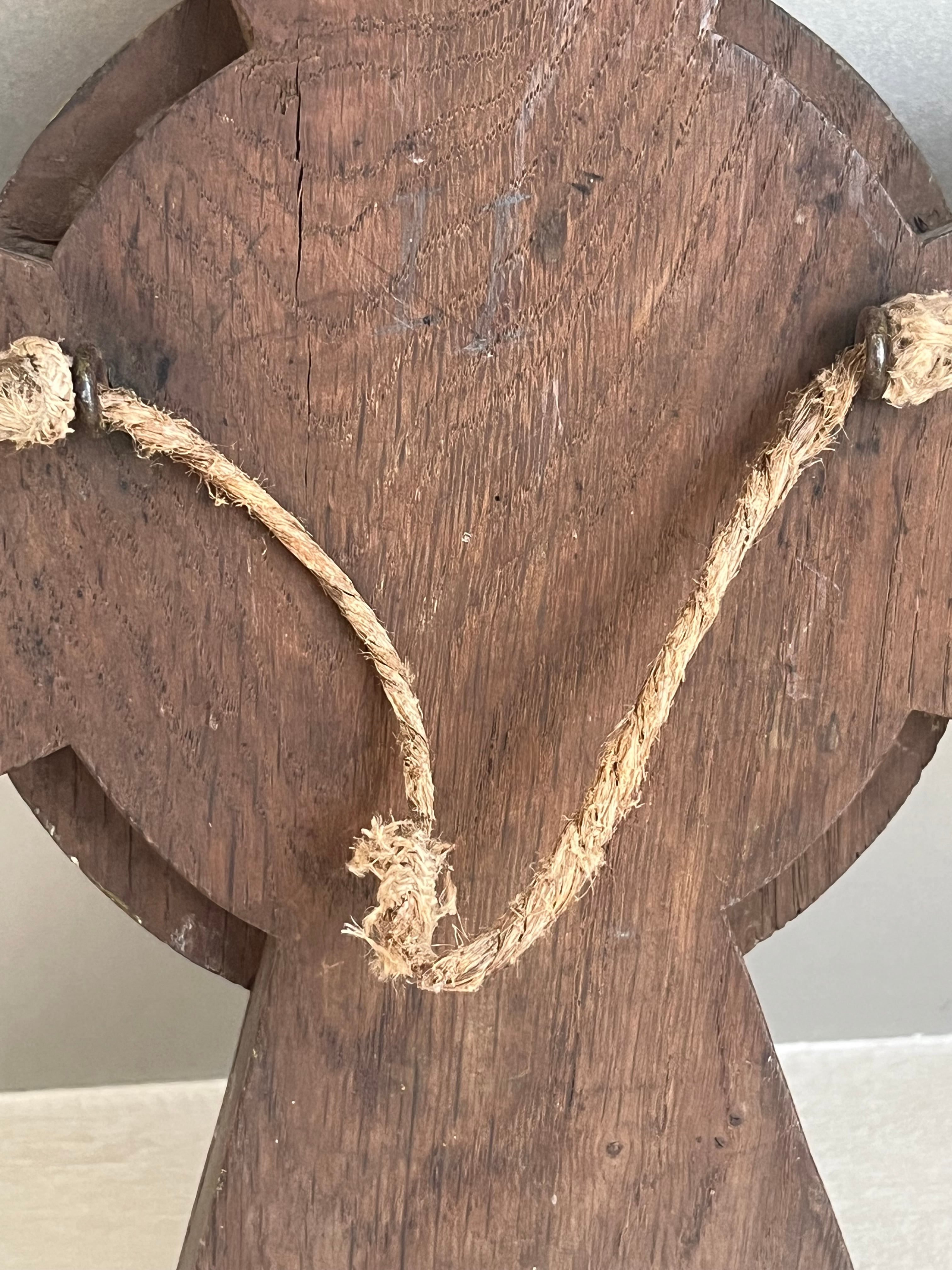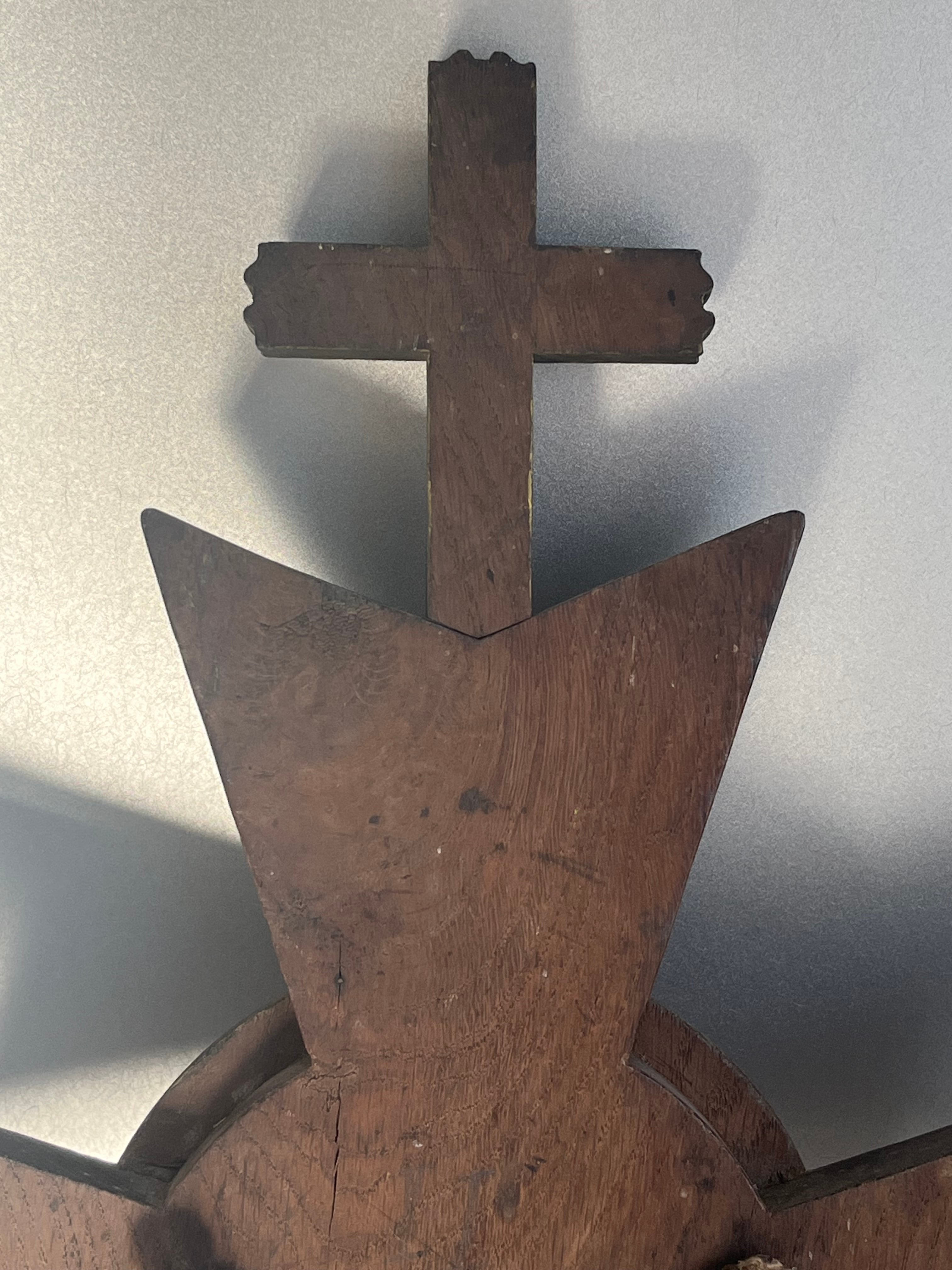 教会の装飾として使われていたもので、背面には壁にかけられる様紐がついています。