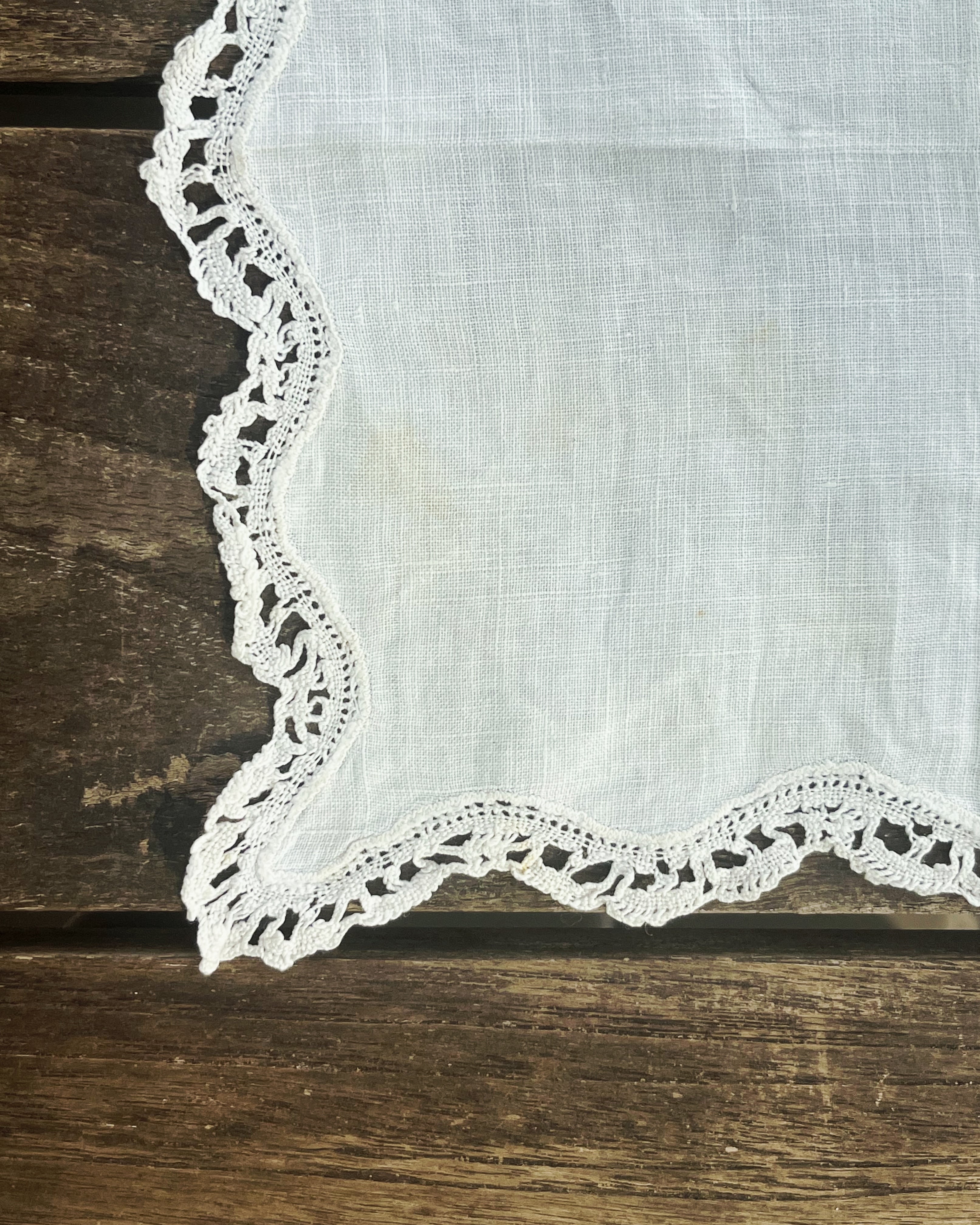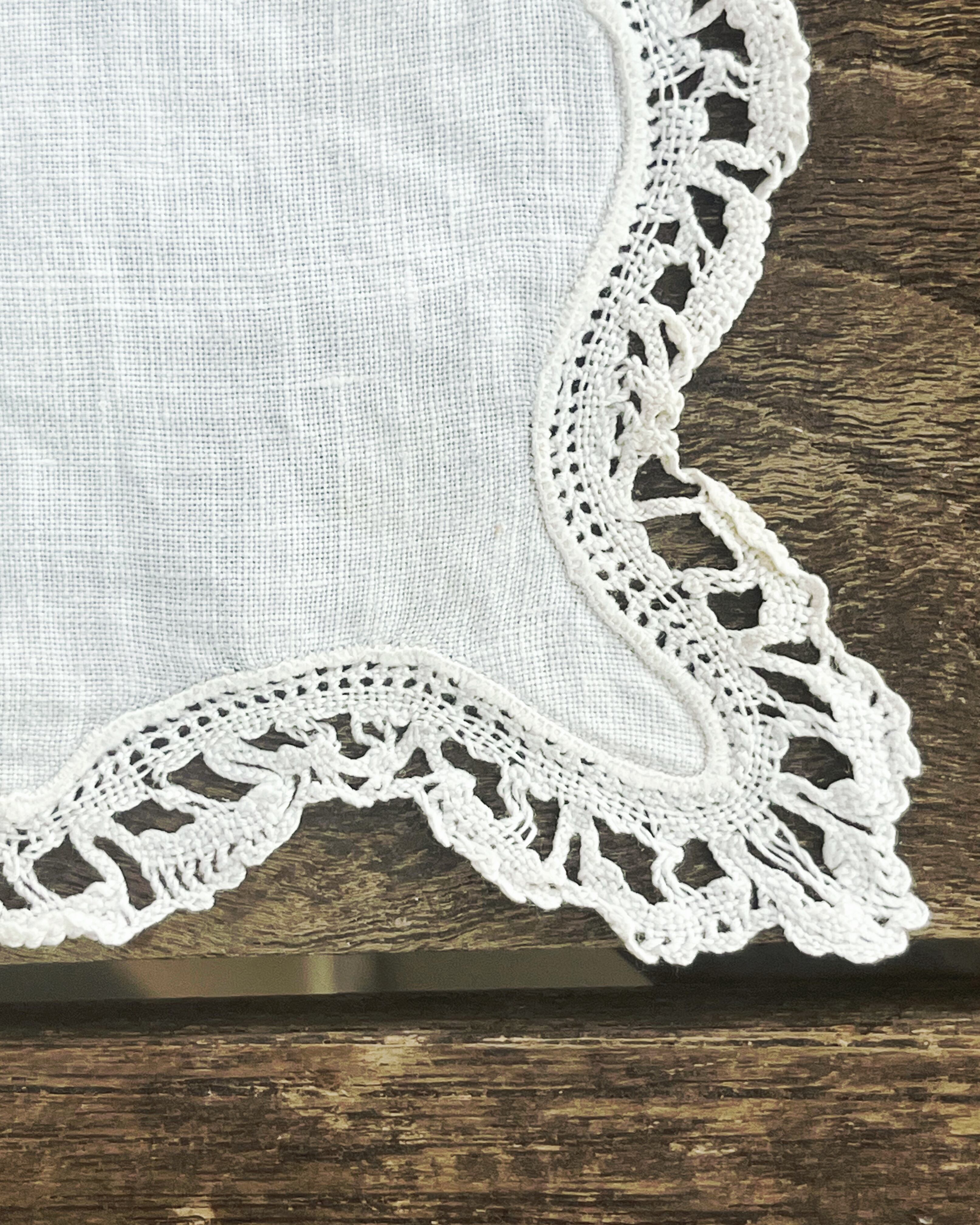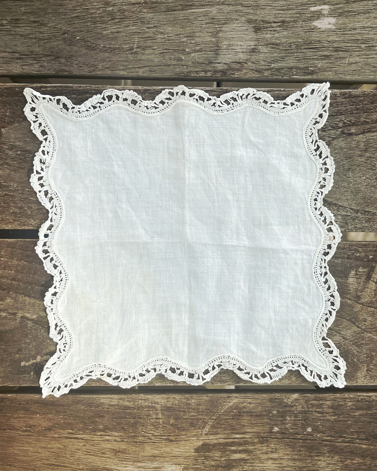 土台生地にボビンレースで装飾を施した、フランスの古いドイリーです。