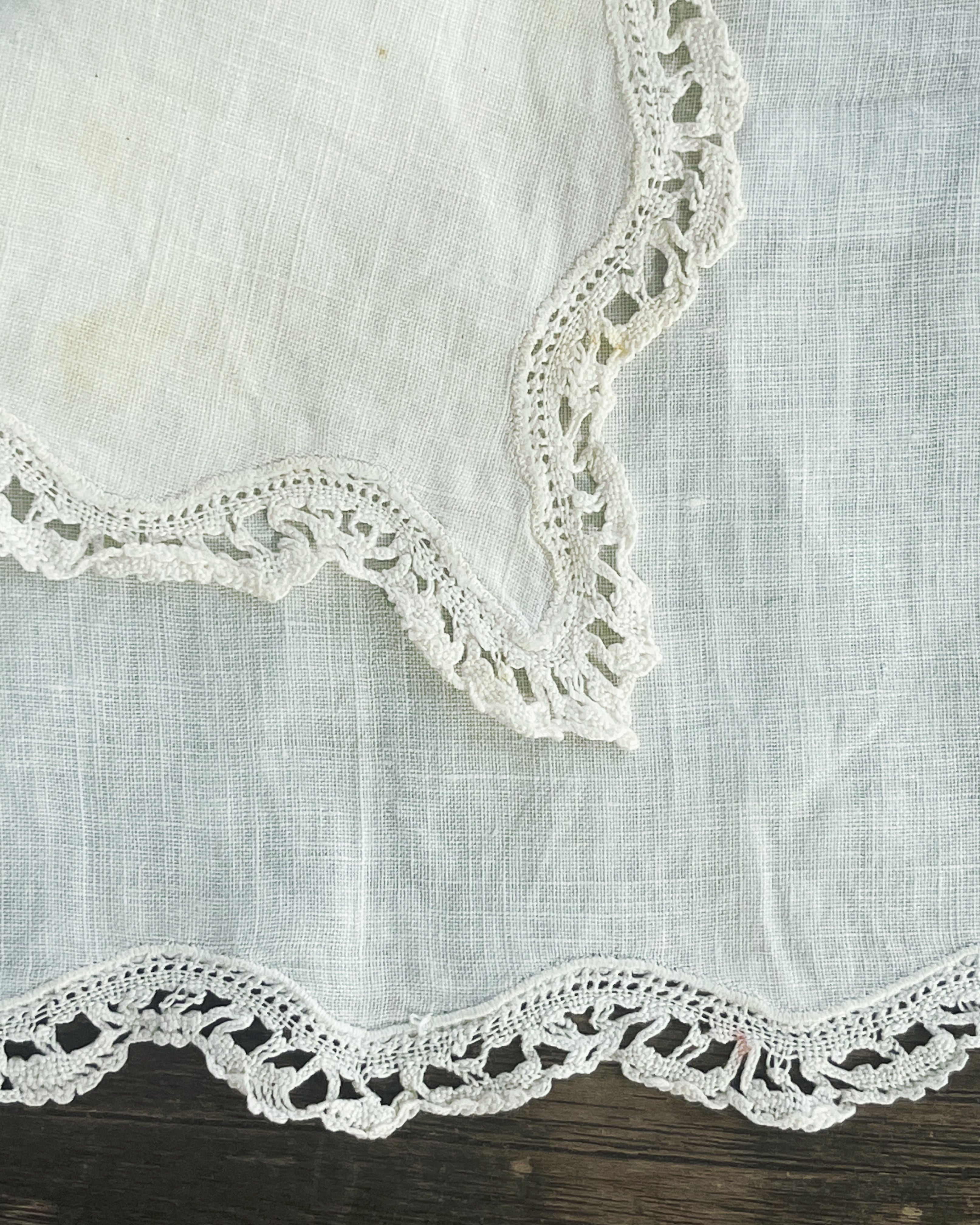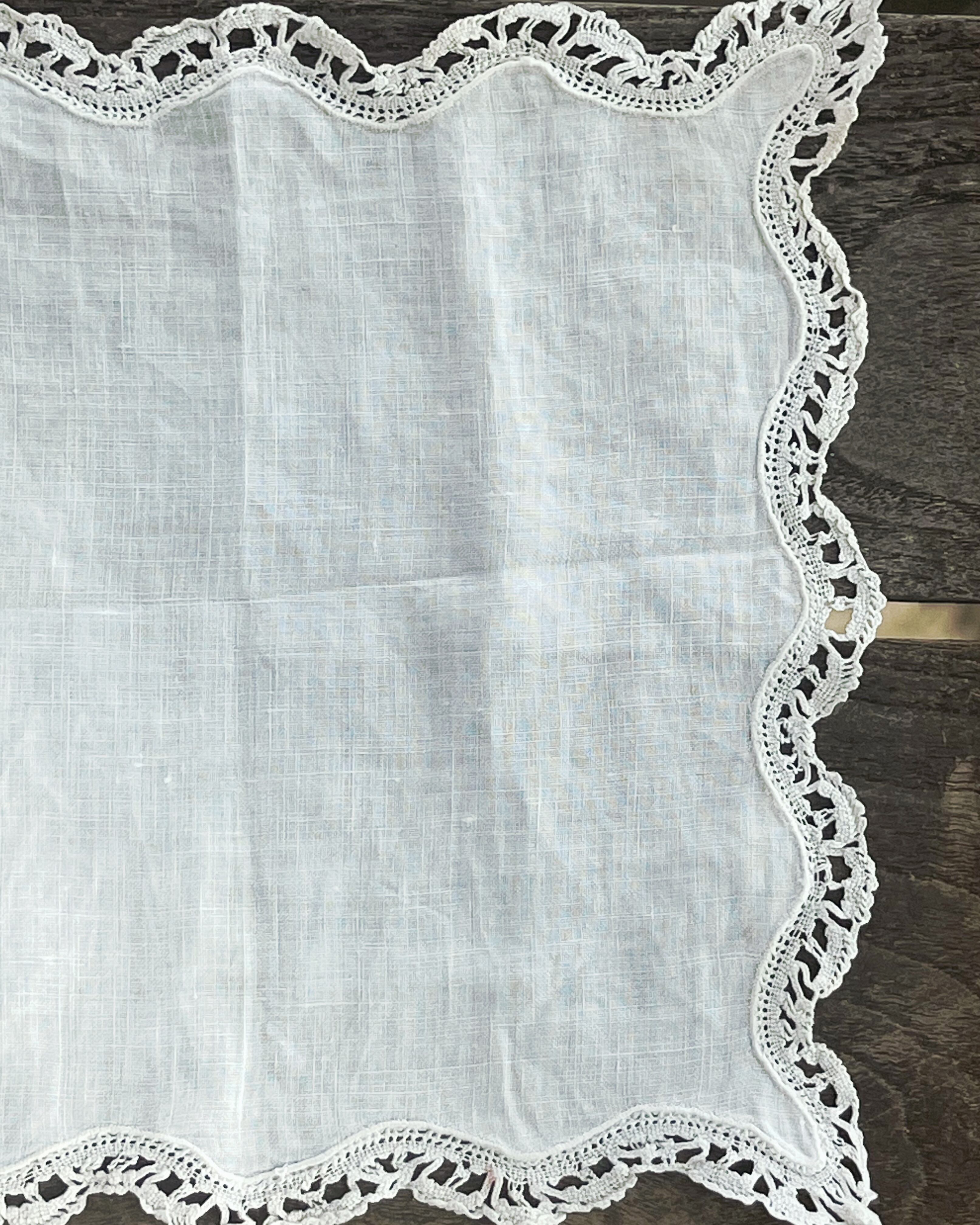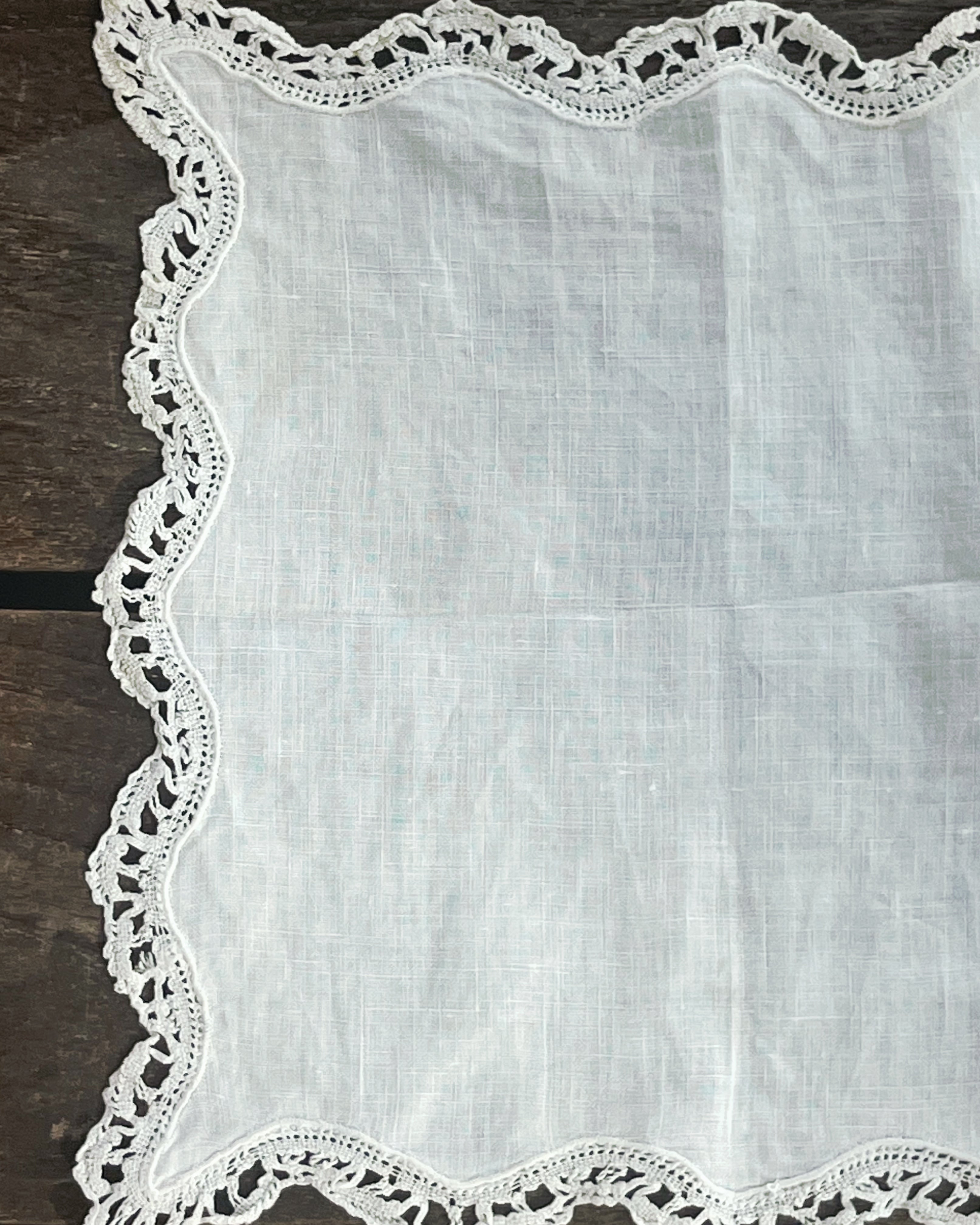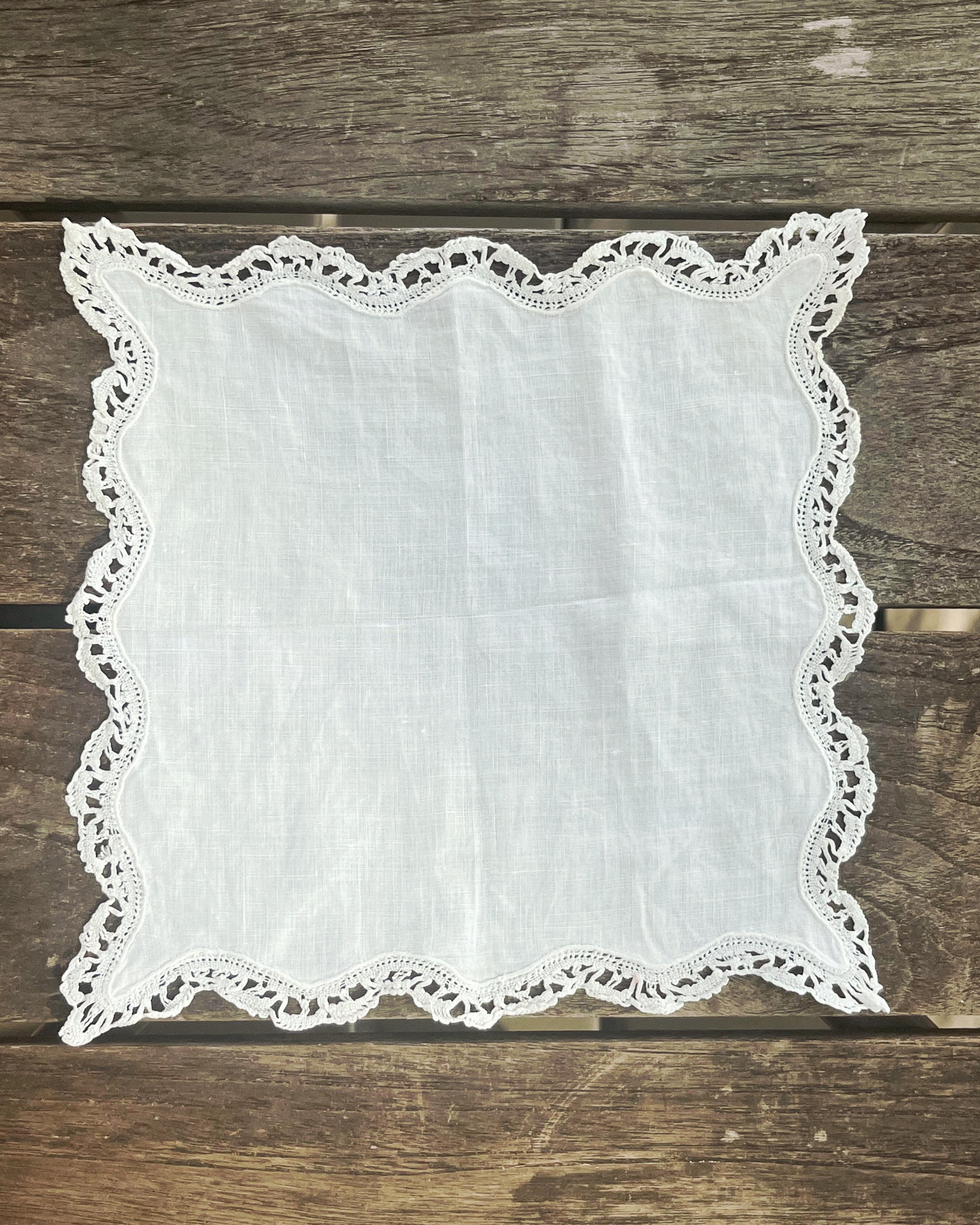 土台生地にボビンレースで装飾を施した、フランスの古いドイリーです。