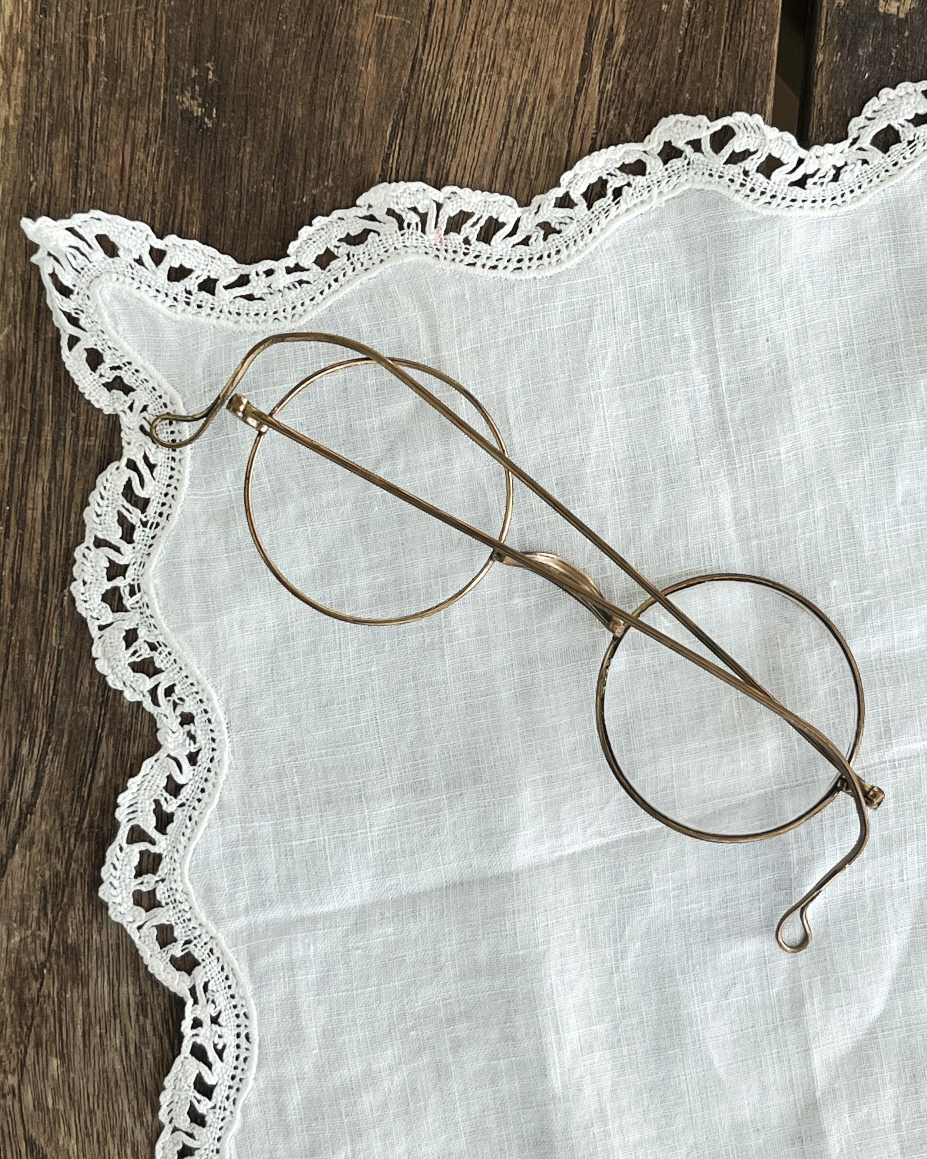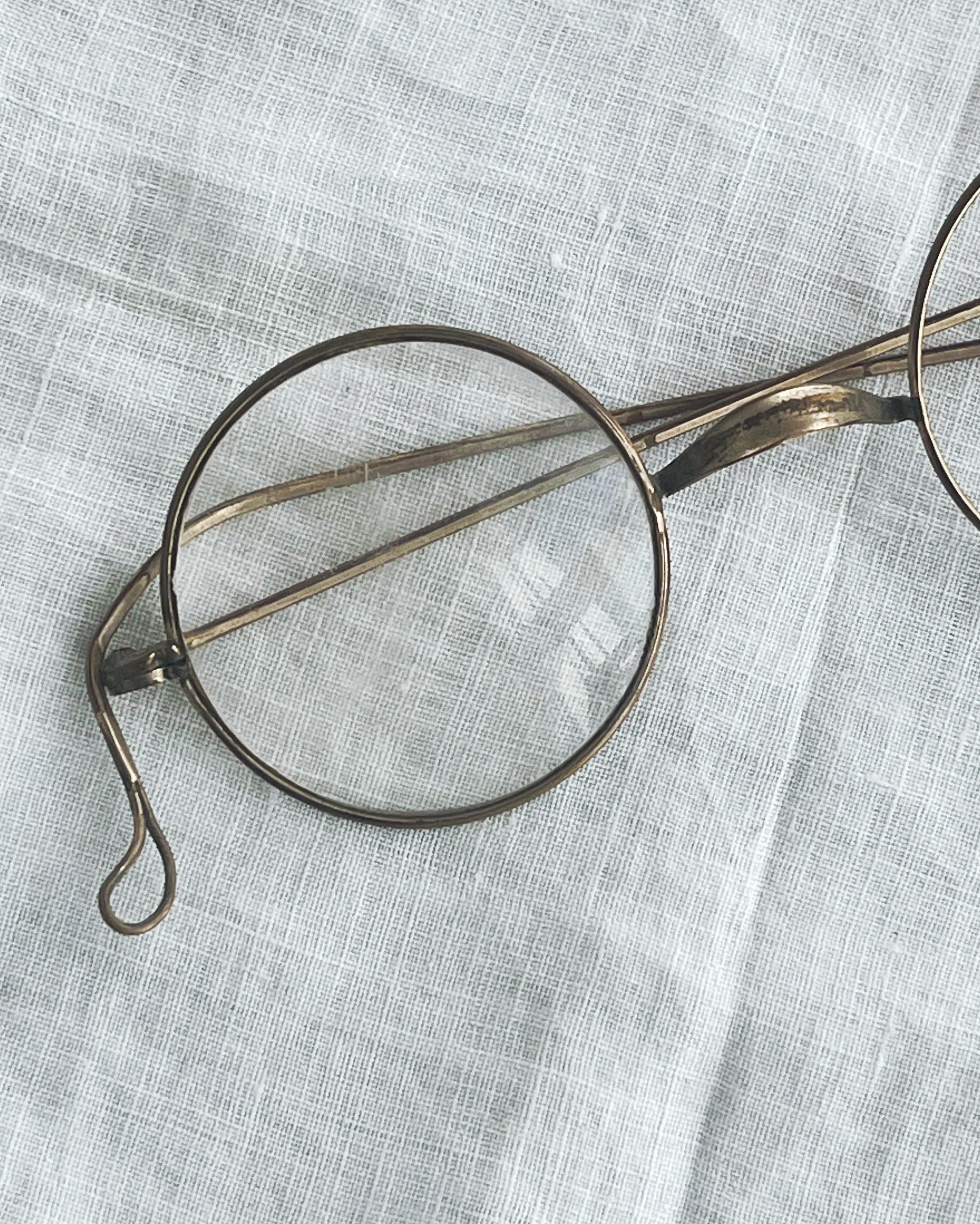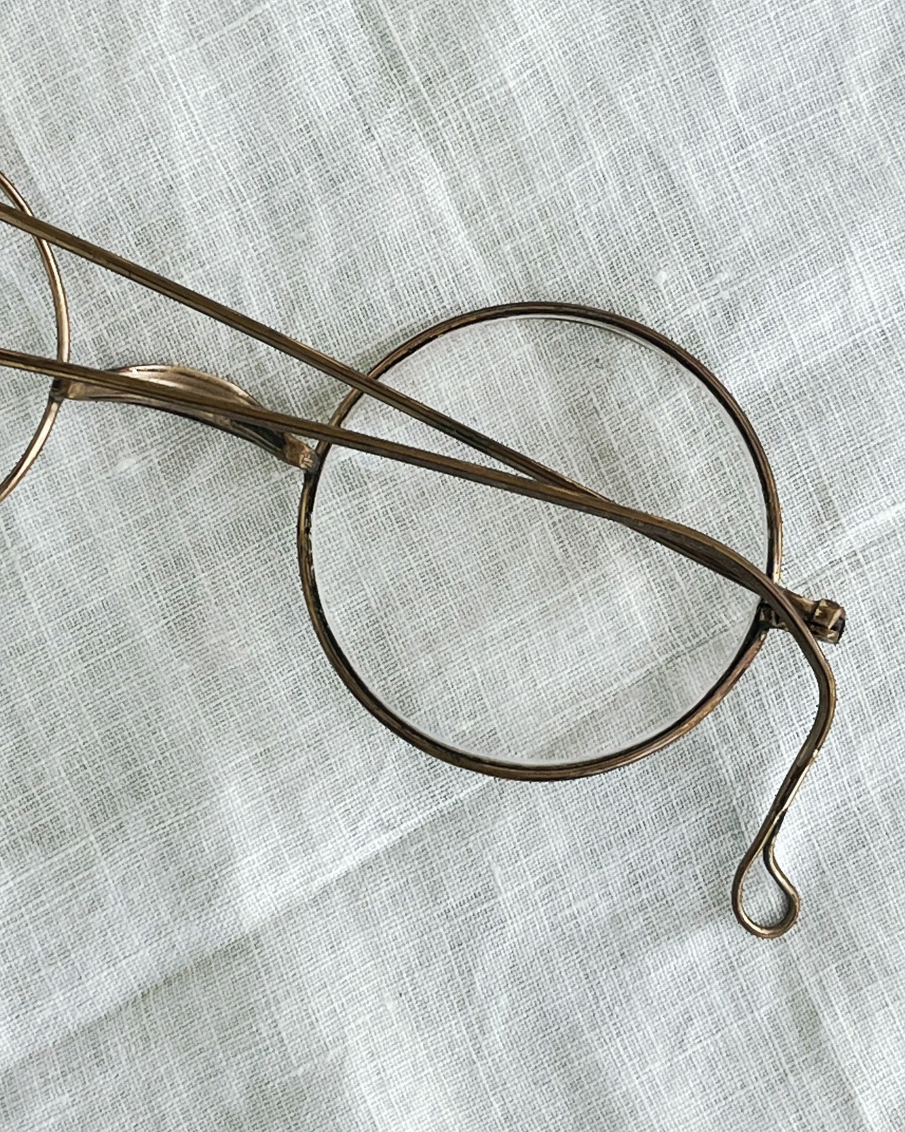 フランスの古い真鍮製ワイヤーフレームの丸メガネです。
