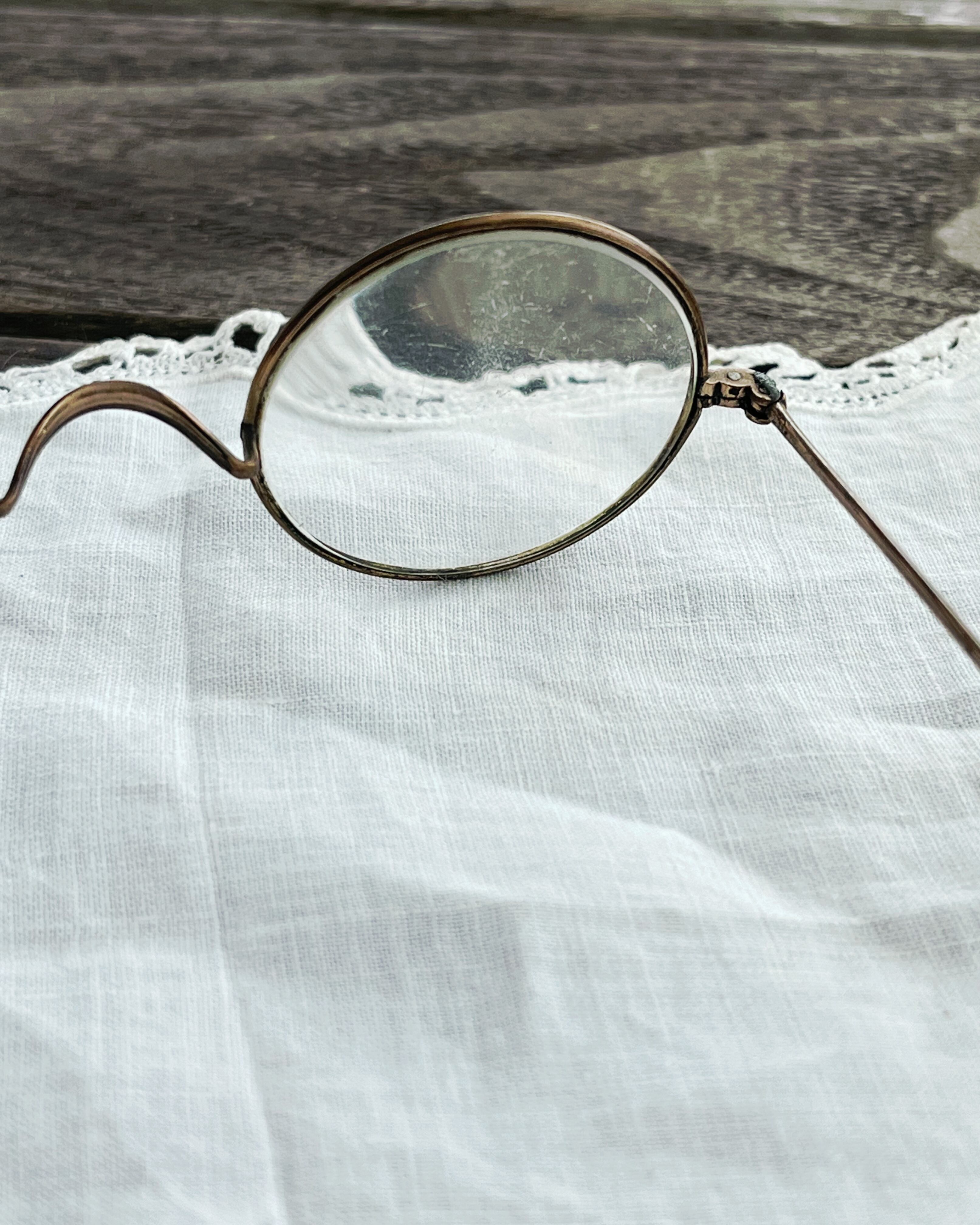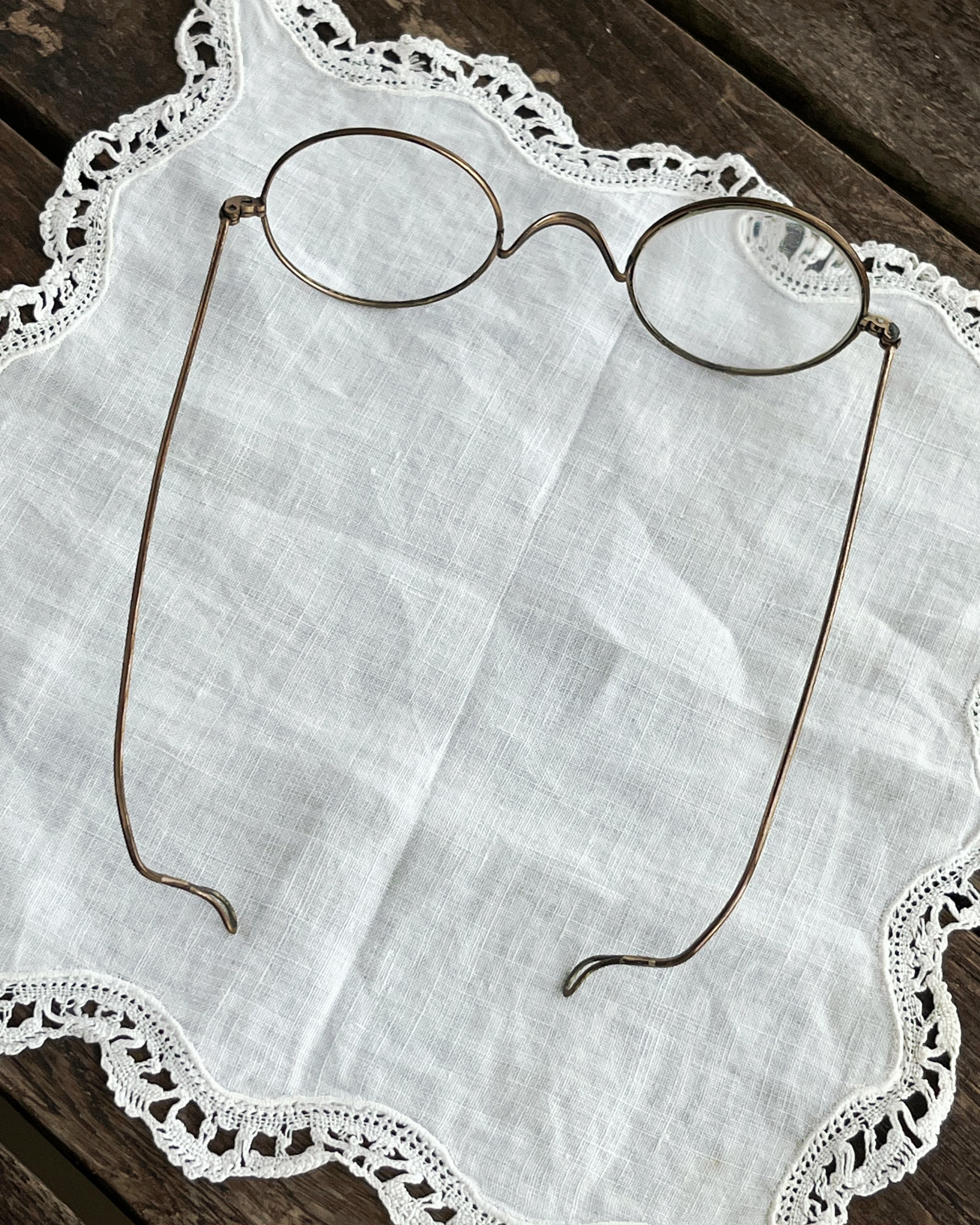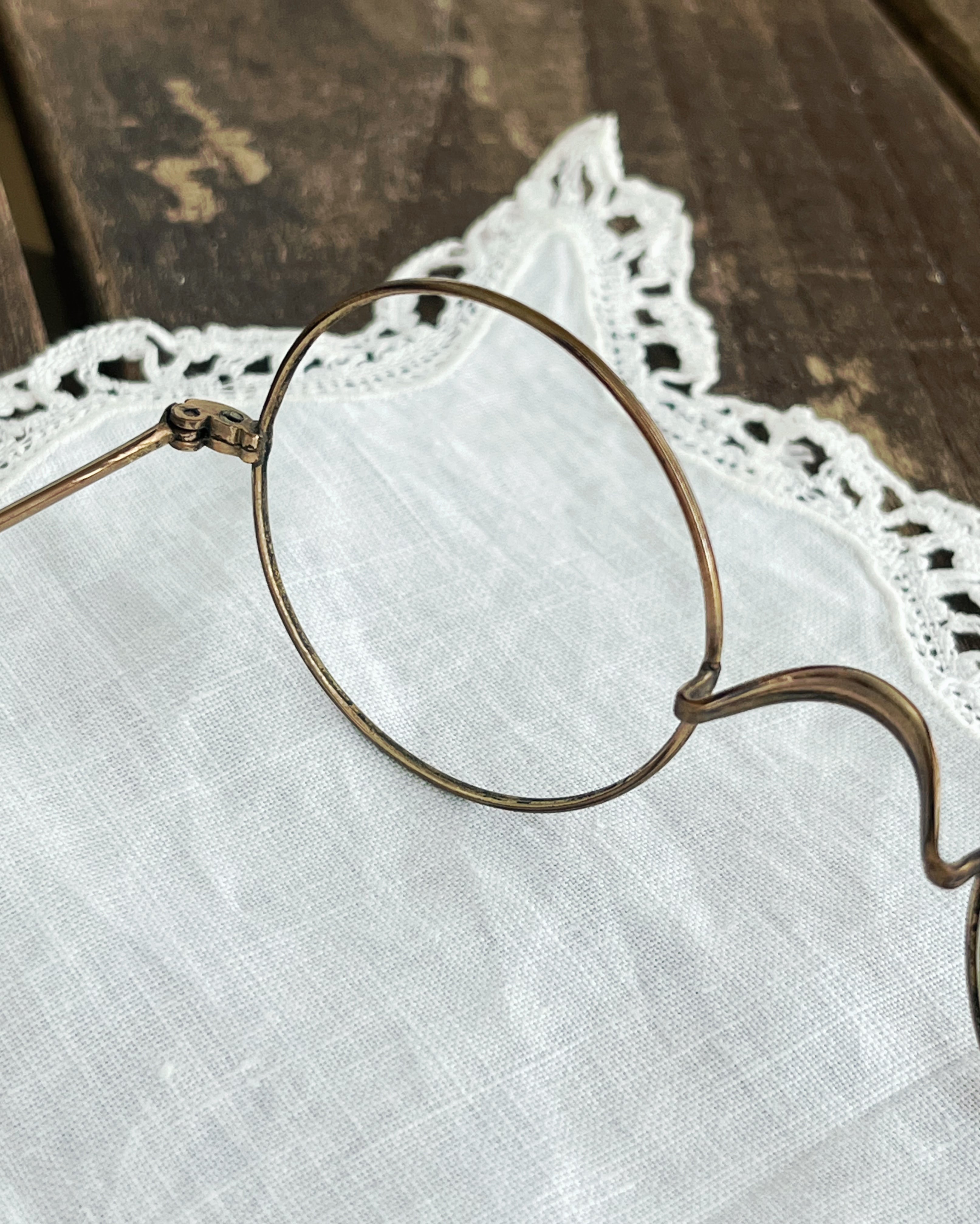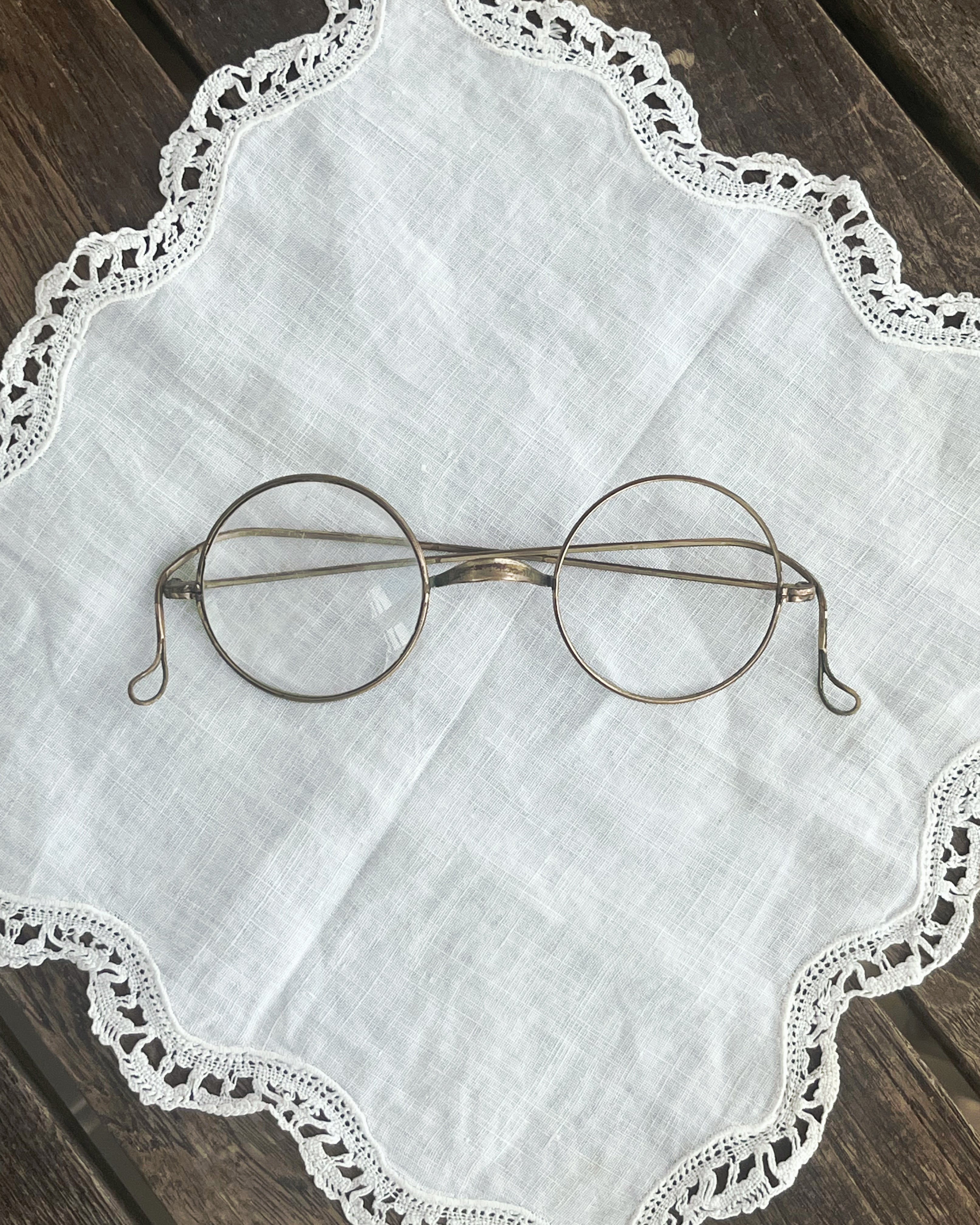 フランスの古い真鍮製ワイヤーフレームの丸メガネです。