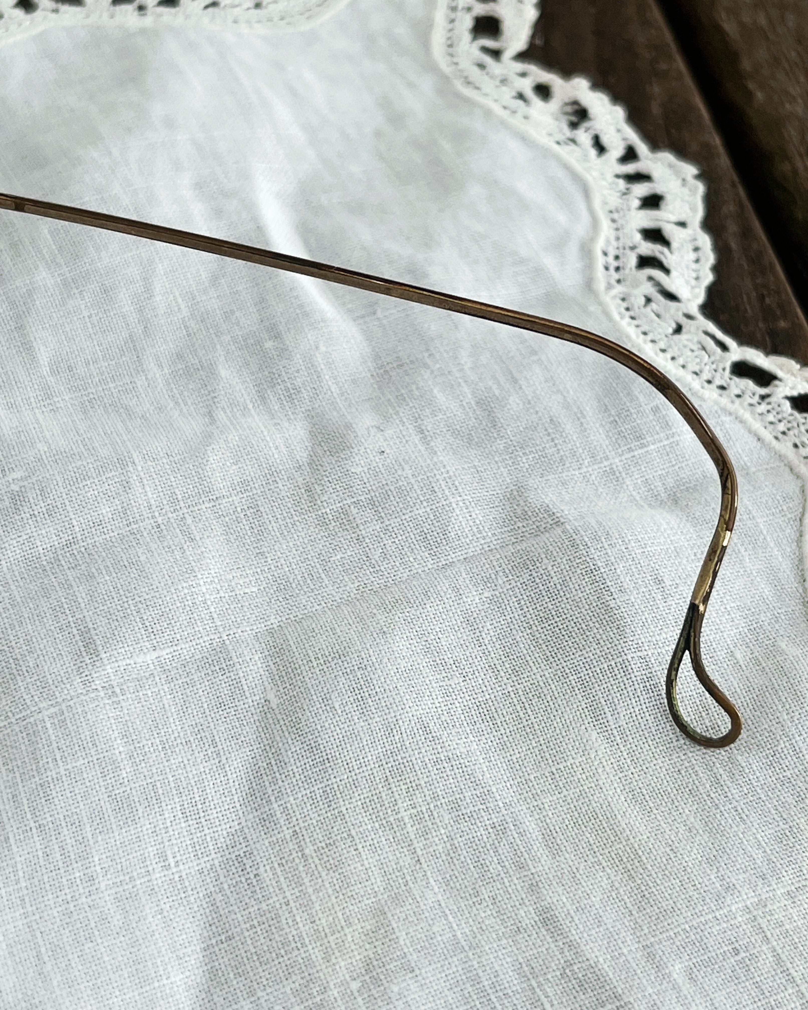 極細の真鍮ワイヤーで構成された繊細なラインは、アンティークならではの軽やかでクラシカルな佇まいがあります。