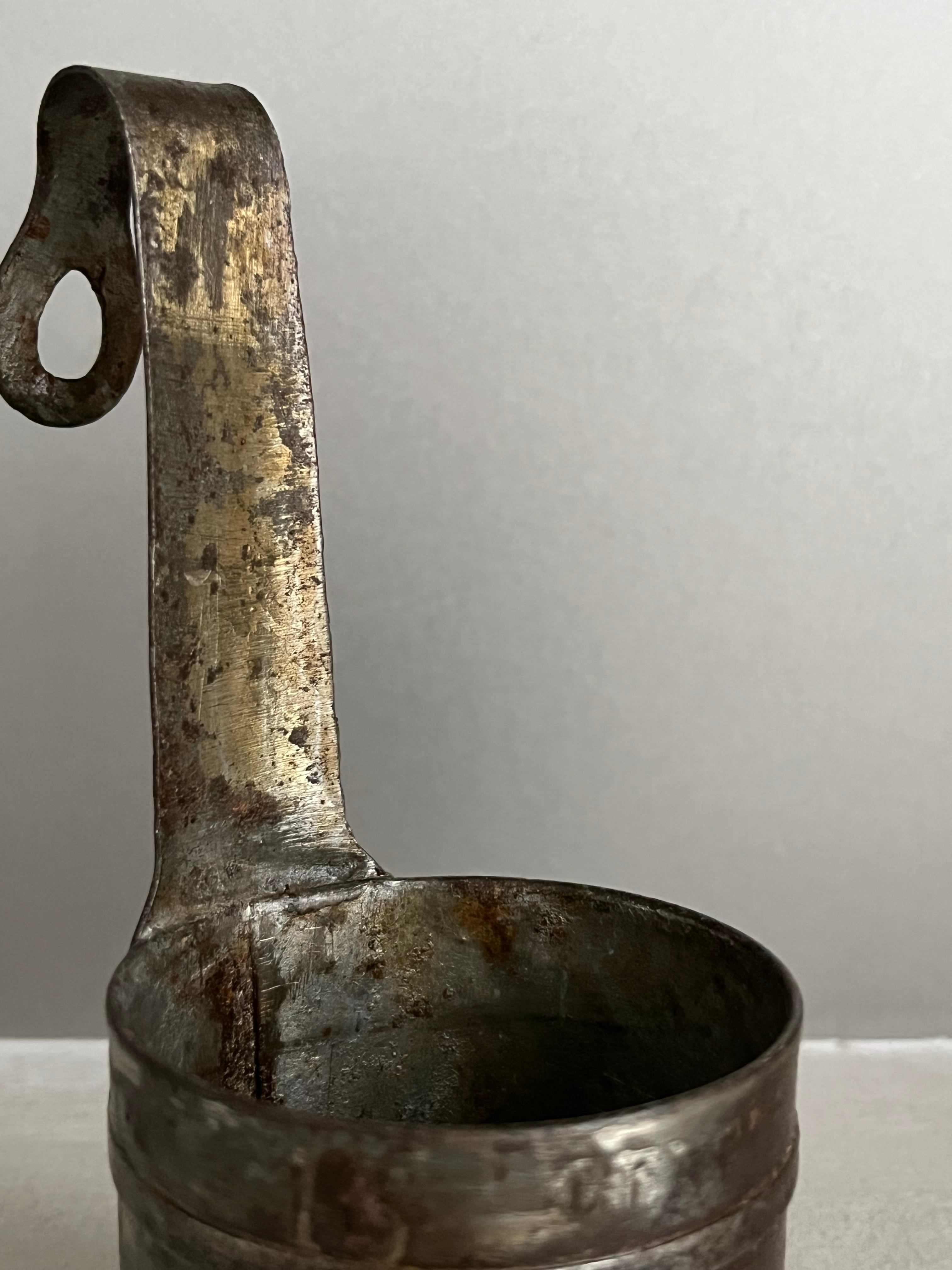 壁にかけやすく、小麦を掬うときの持ち手にもなるフック付きの実用的なデザインです。