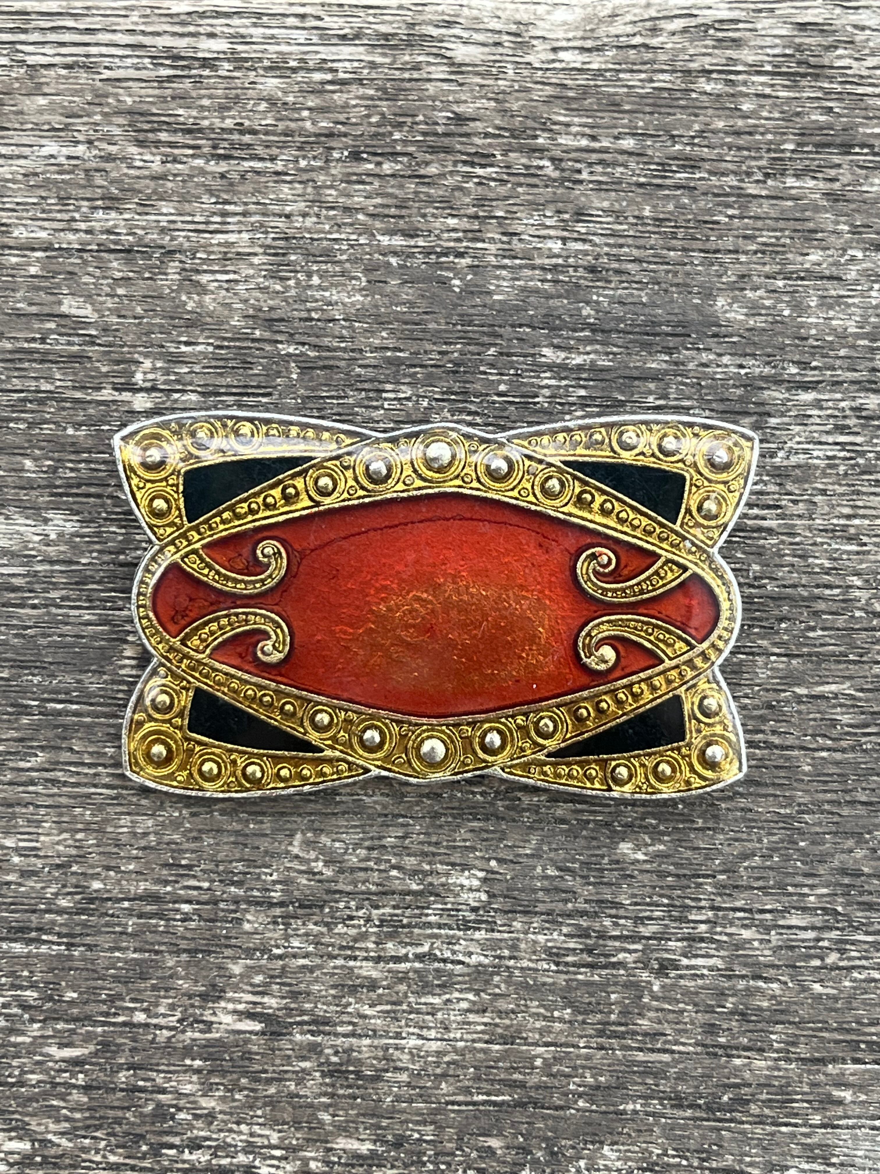 赤と黒のコントラストにゴールドの装飾が映える、小さいながら存在感のあるアクセサリーです。