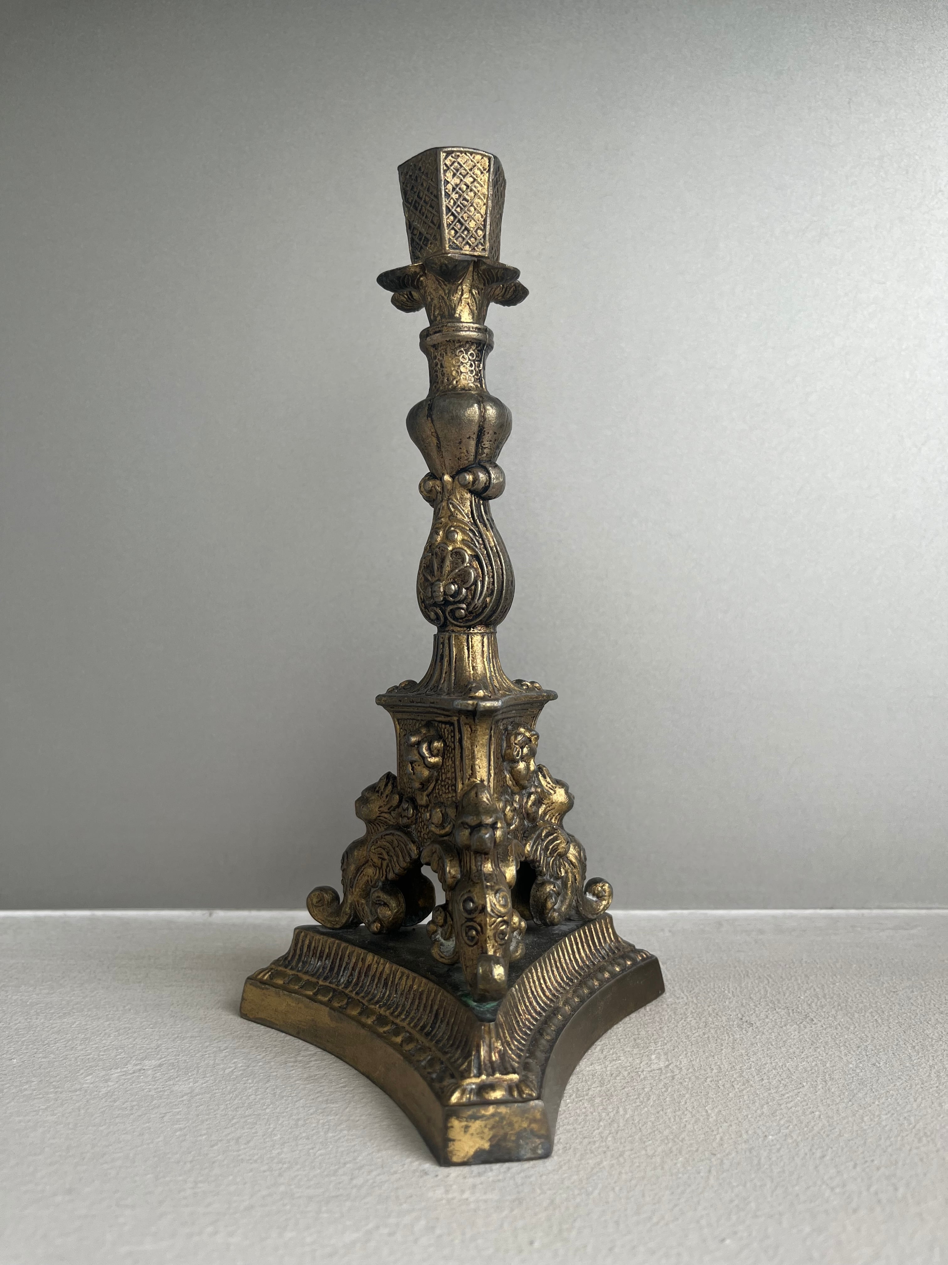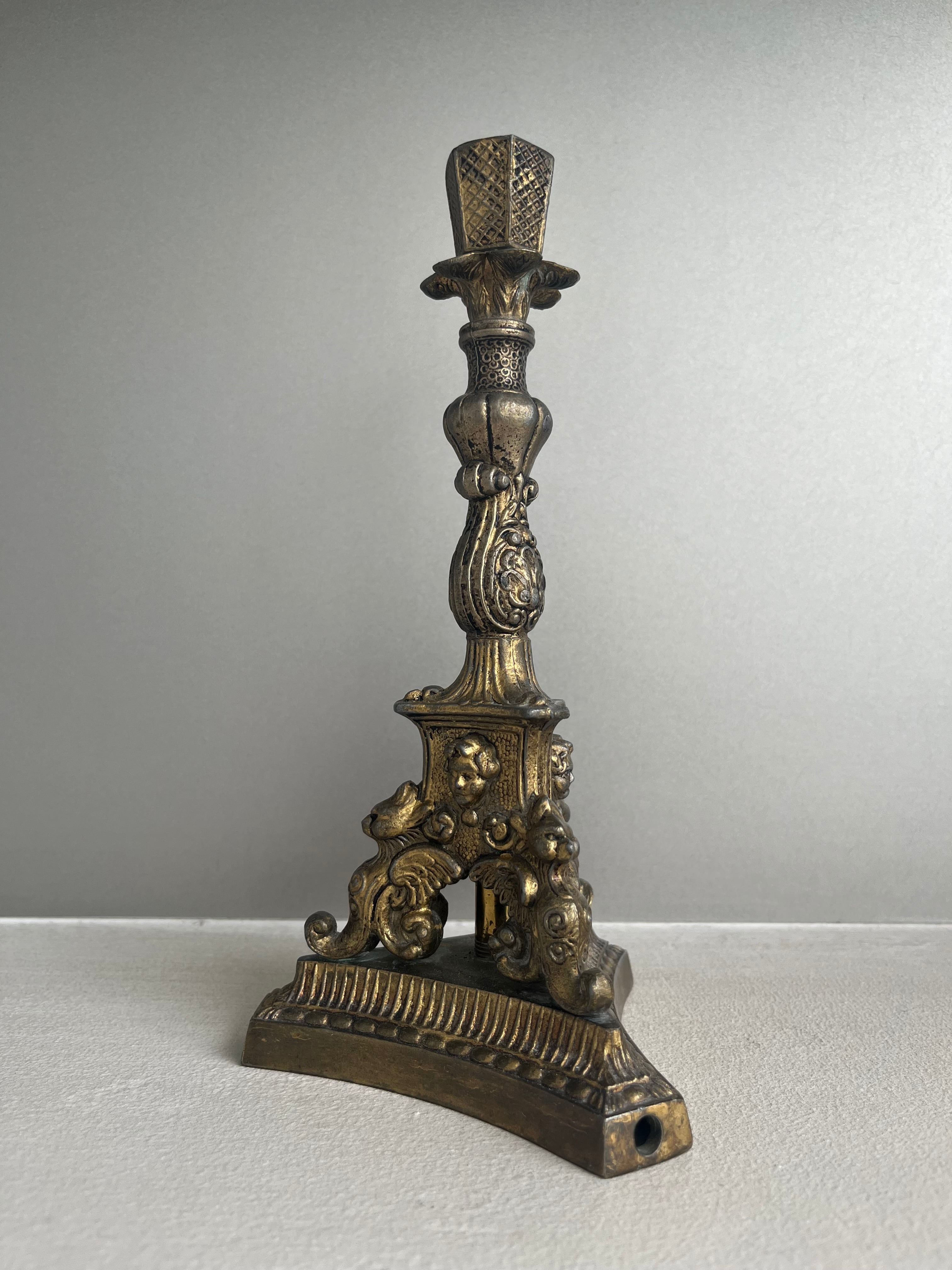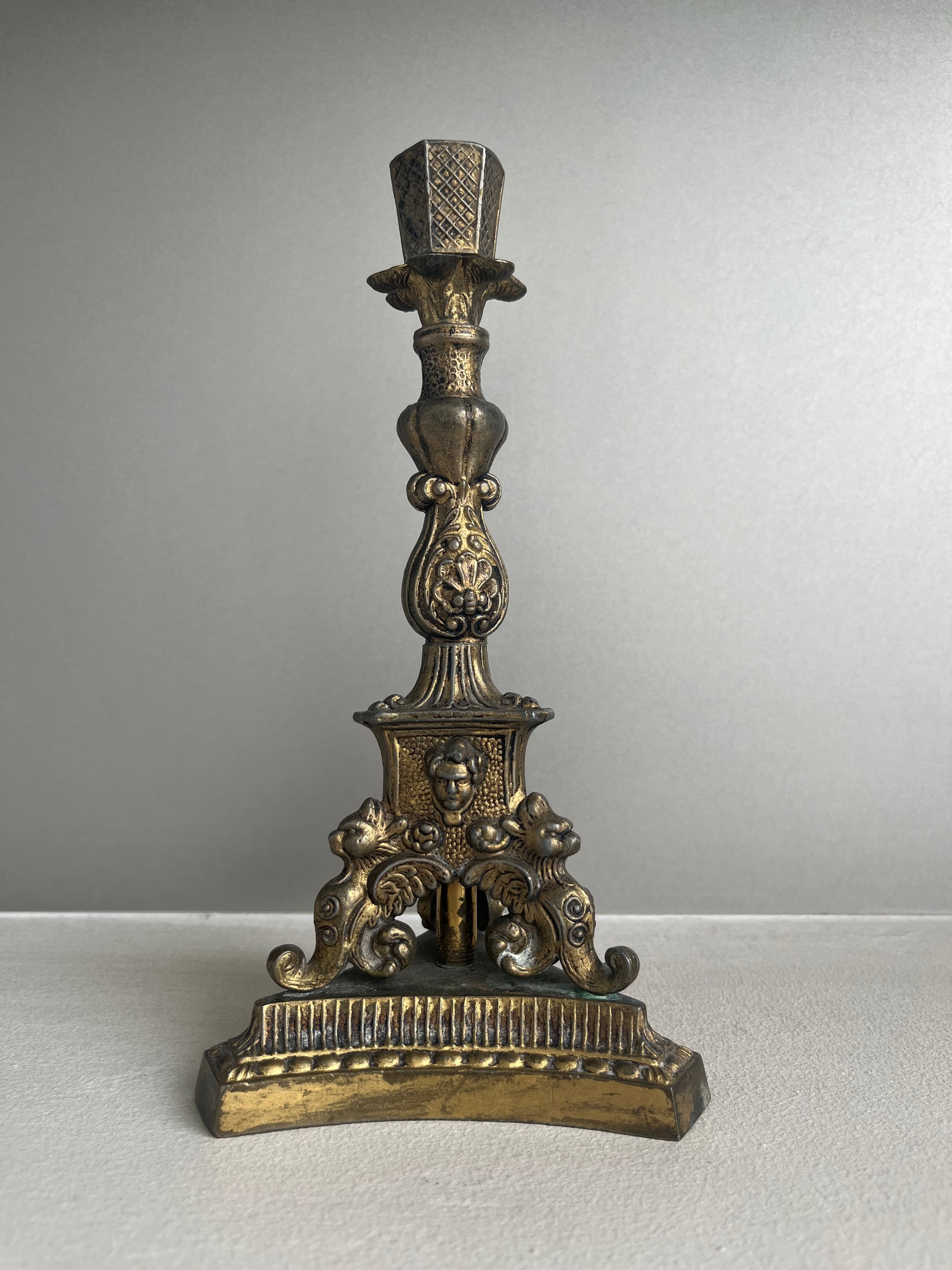 イタリア / 電気ランプ台(元は蝋燭立て) 真鍮