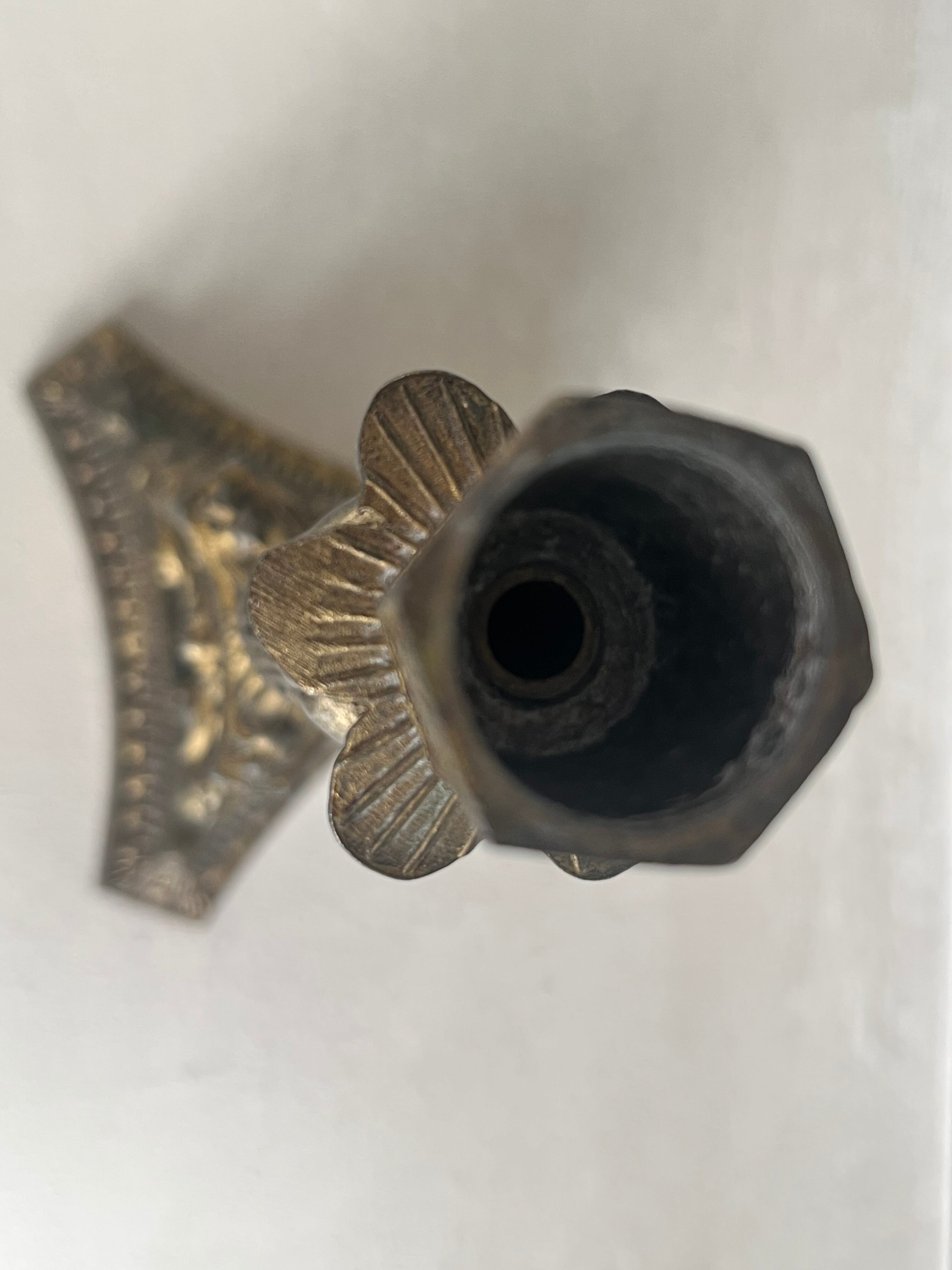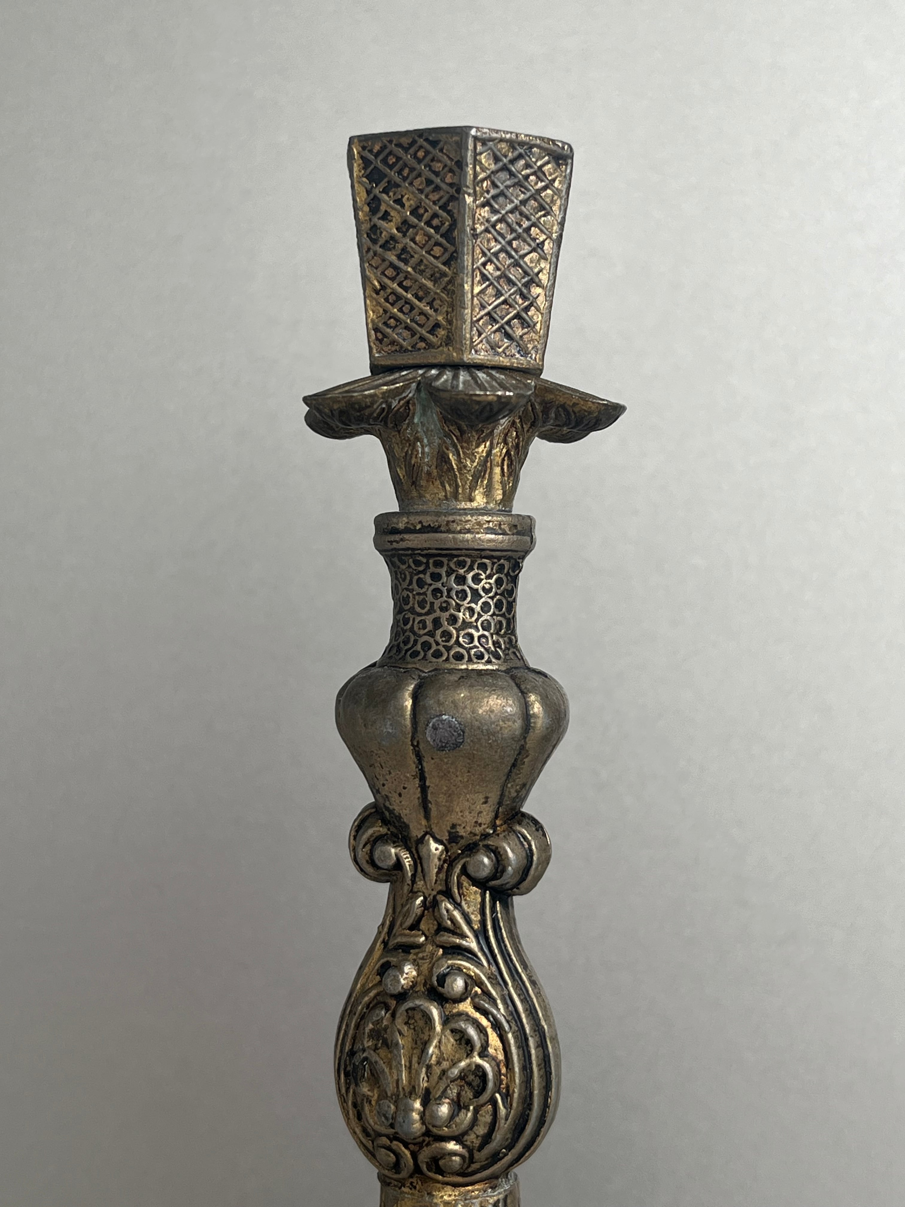 20世紀に入り電気が発達したため、燭台を電気のランプを立てる様に改造するのが流行り、こちらも中心部を電気コードが通せる様に改造してあります。