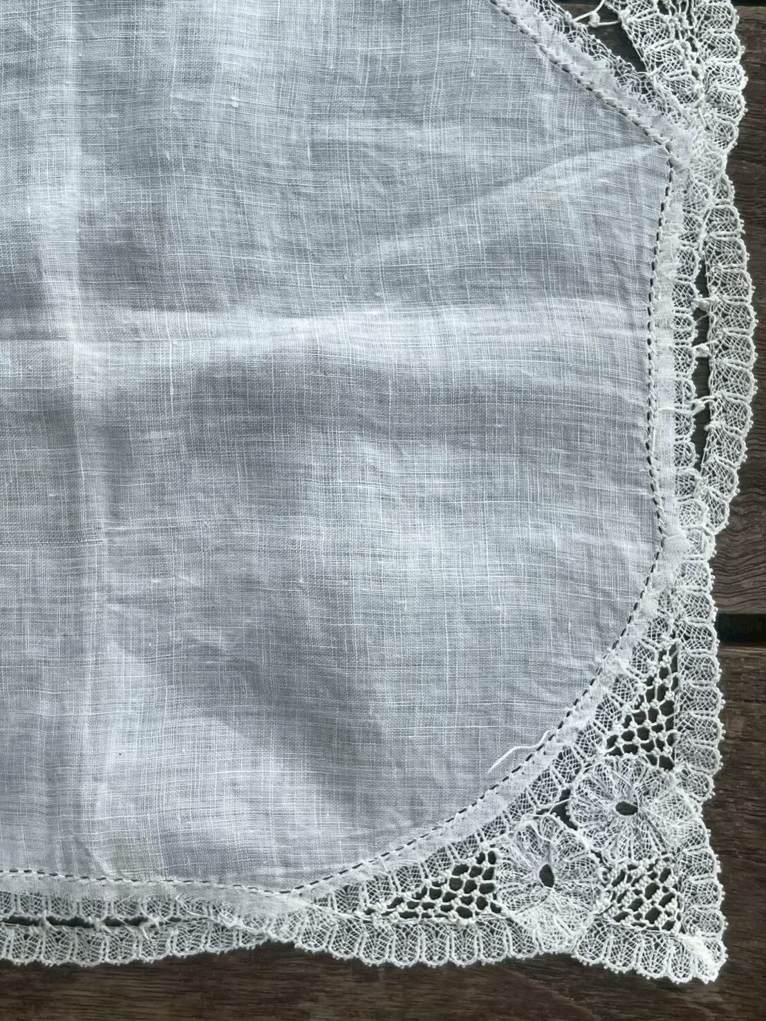 細かく繊細なレースが透け感のある土台布に丁寧に縫い付けられています。